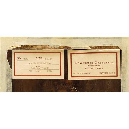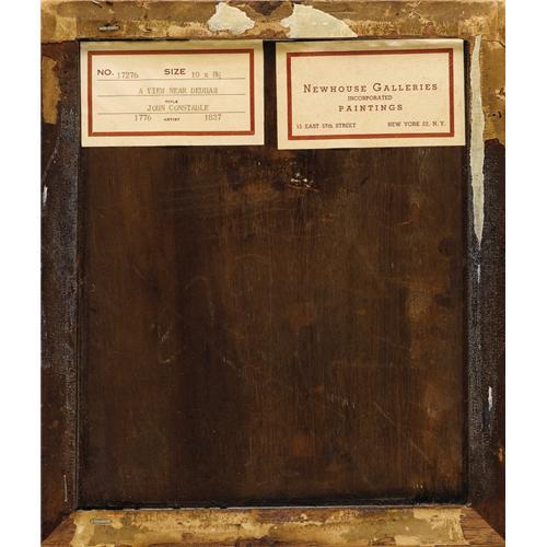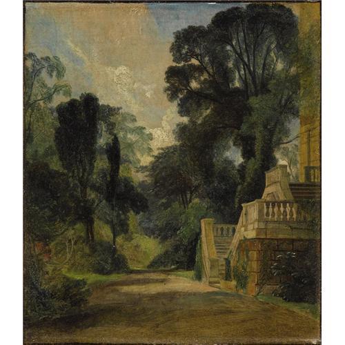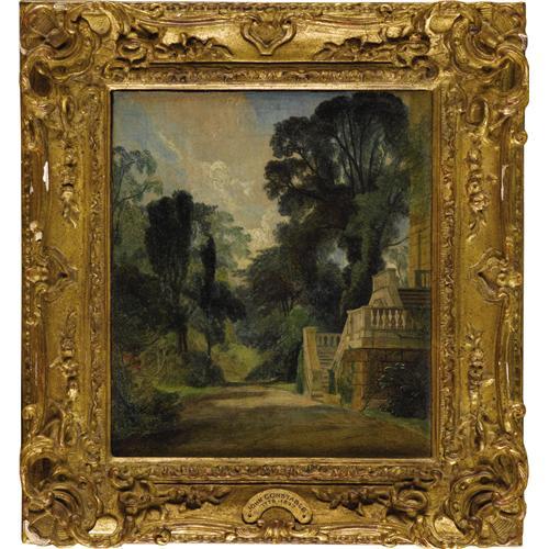 <B>Attributed to JOHN CONSTABLE, R.A.</B></I> (British 1776-1837)<BR><I>A View Near Dedham</B></I><BR>Oil on canvas on panel<BR>10 x 8-3/4 inches (25.4 x 22.2 cm)<BR><BR>Provenance:<BR>Newhouse Galleries (New York);<BR>Mr. and Mrs. F. Howard Walsh (Fort Worth, Texas);<BR>Walsh Family Art Trust<BR><BR>The village of Dedham in Suffolk is located along the River Stour, where Constable's father owned a profitable mill; the Dedham Vale straddles Suffolk and Essex counties and is less than two miles from East Bergholt, where Constable had his first studio. The artist consistently made drawings and oil sketches of various sites in and around Dedham and East Bergholt. In fact this region is today known as "Constable Country". The present painting depicts the stone walls and grand stairway of what appears to be a sizeable country residence set among dense trees and other vegetation.<BR><BR><BR><BR><b>Shipping:</b> Requires 3rd Party Shipping (<a target="_blank" href="http://www.heritageauctions.com/common/shipping.php">view shipping information</a>)