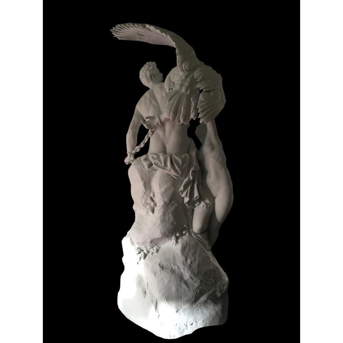 Attributed to Eduard Muller ( German 1828-1895 ) ceramic sculpture, "Prometheus Bound and the Oceanids." The original sculpture by Muller was carved from a single block of marble, his masterpiecebetween 1872- 1879, on display in The National Gallery, Berlin. Provenance - had been the focal display for a 19thc jewelry store in Paris. From the South Carolina estate of Robert & Robin White,Rose Hill Plantation.