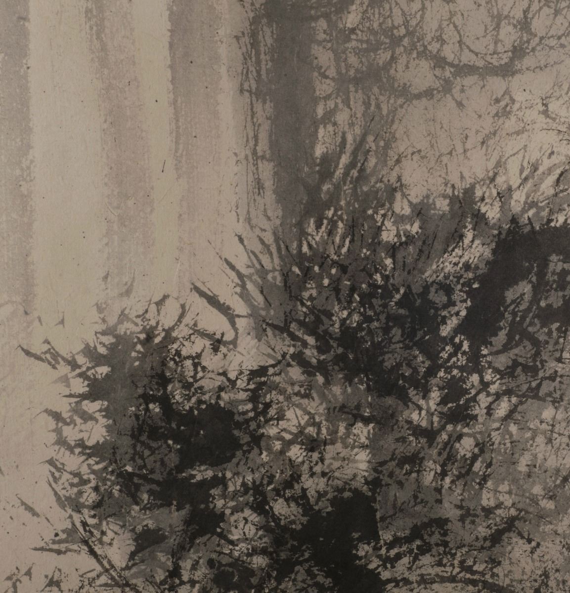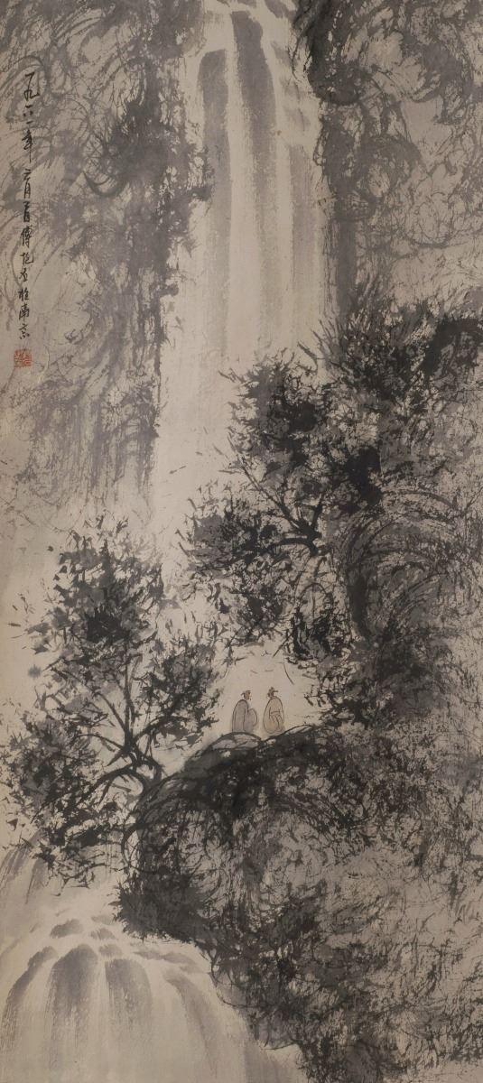 Chinese Ink And Watercolor Painting,hanging On Scroll, Skillfully Depicted A Waterfall. Marked As Fu Baoshi
