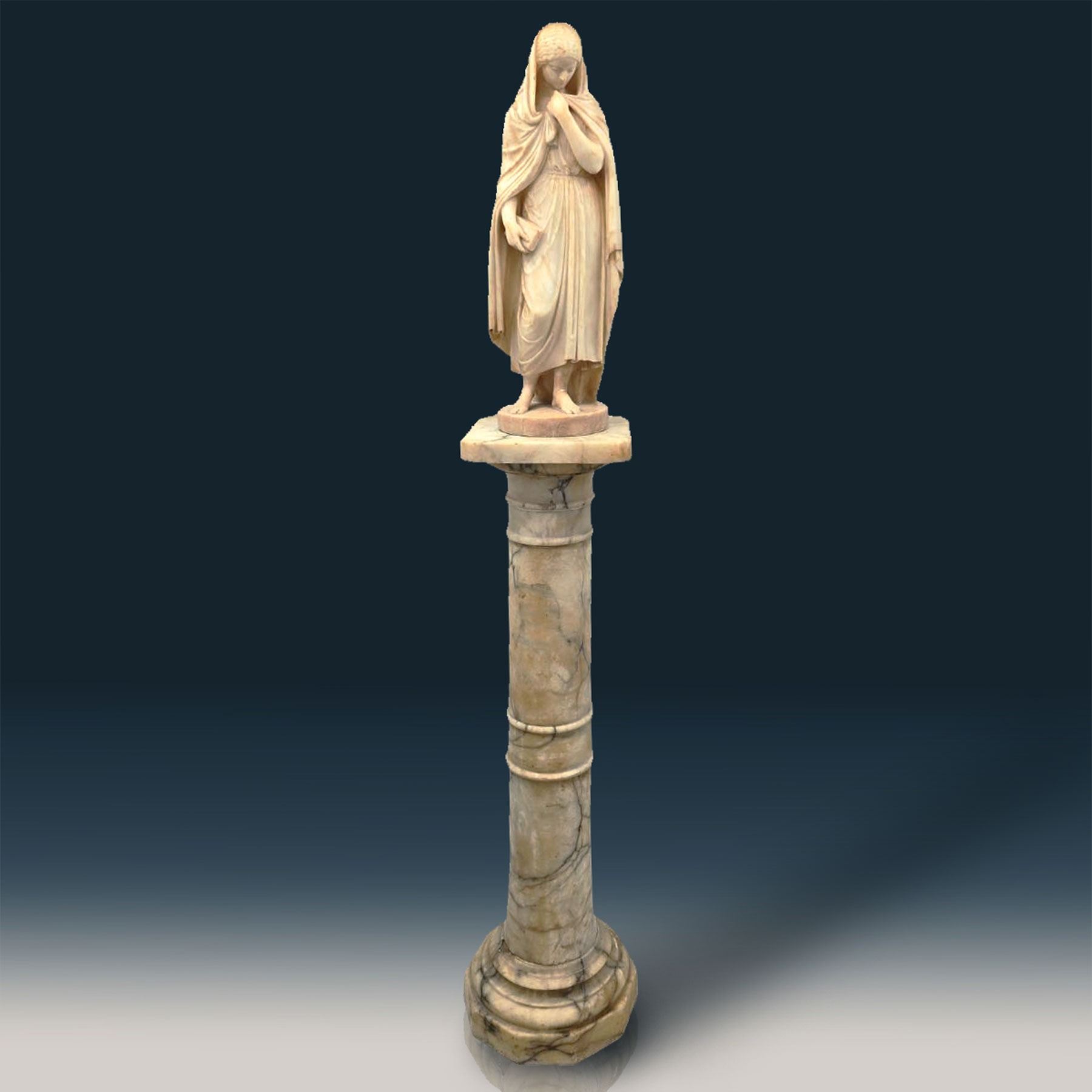 Attributed To British-Benjamin Spence 1822-1866 Marble Statue On Pedestal 19th C
