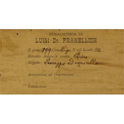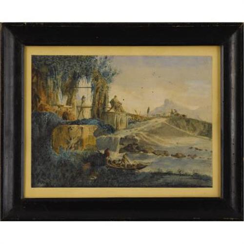 <B>Attributed to CESARE BISEO </B></I>(Italian 1843-1909)<BR><I>Landscape with Classical Ruins</B></I><BR>Watercolor on paper<BR>8 x 11 inches (20.3 x 27.9 cm)<BR>Unsigned<BR> <B>Condition Report:</B> Minor fading, scattered holes<BR><BR><b>Shipping:</b> Requires 3rd Party Shipping (<a target="_blank" href="http://www.heritageauctions.com/common/shipping.php">view shipping information</a>)