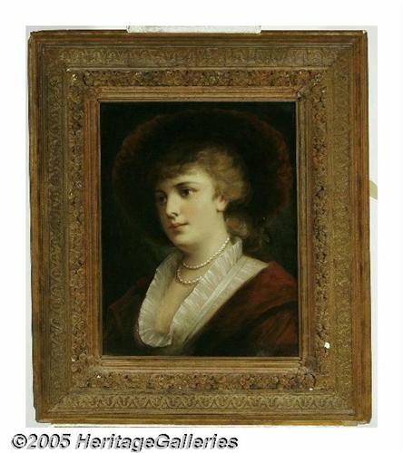 <B>Attributed to Fillipo Castelli (Italian 1859- 1932)</B></I><BR>Portrait of a Woman<BR>Oil on canvas<BR>20in. x 15.5in.<BR>Signed 'F. Castelli' lower right<BR><BR><Condition report:<BR>Canvas is wax-lined, tiny loss on right cheek below eye, nickel sized puncture repaired and overpainted in left shoulder outside of shirt collar, otherwise good condition>