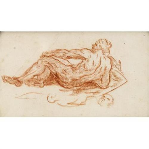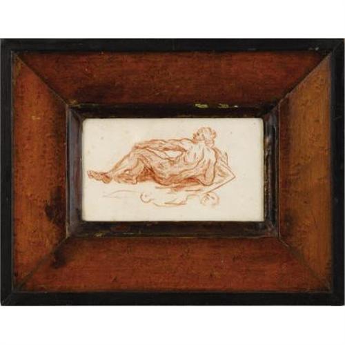<B>19th Century French School</B></I><BR><I>Reclining Male Nude</B></I><BR>Colored chalk on paper<BR>3-1/4 x 5-1/4 inches (8.3 x 13.3 cm)<BR> <B>Condition Report:</B> Not examined outside of frame<BR><BR><b>Shipping:</b> Requires 3rd Party Shipping (<a target="_blank" href="http://www.heritageauctions.com/common/shipping.php">view shipping information</a>)
