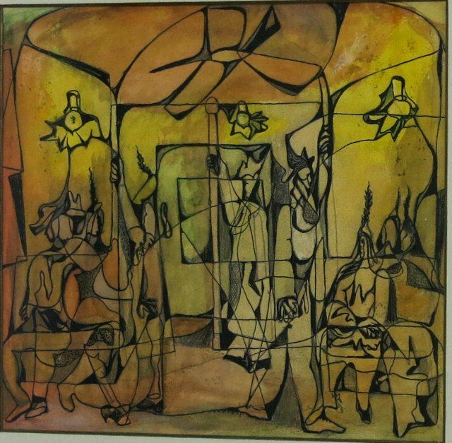 Watercolor & ink on paper. Monogrammed "L.L." Henri Michaux (1899-1984). No guarantee of authenticity or provenance. Approx. 8" H x 8 1/2" W sight, 15" H x 15" W framed. Property of the Tyndale Collection, Boonton NJ.
