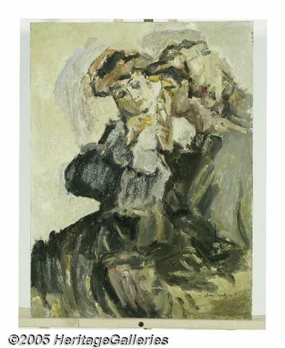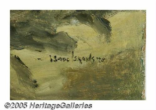 <B>Attributed to ISAAC LAZARUS ISRAELS (Dutch 1865-1934)</B></I><BR>Lighting a Cigarette<BR>Oil on masonite<BR>22.25in. x 16.75in.<BR>Signed lower right 'Isaac Israels '28'<BR><BR>Condition Report: Abrasion damage from broken frame along right edge, scratches (2in.) in surface bottom center and left center under arm of girl, surface yellowed from dirt<BR>