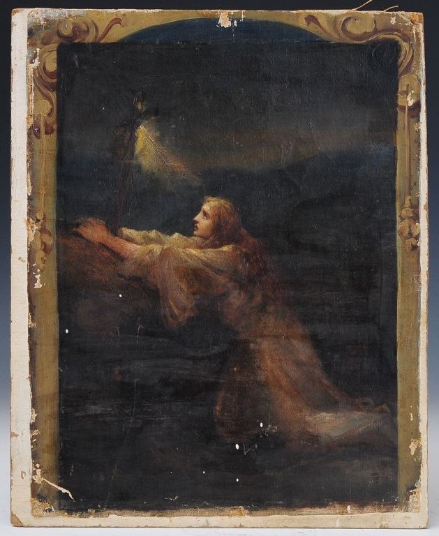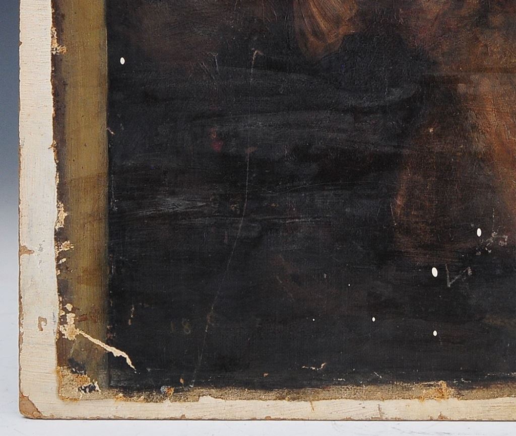 CONDITION REPORT: mounted, border decoration trimmed at top, abrasions at edges and paint splatter