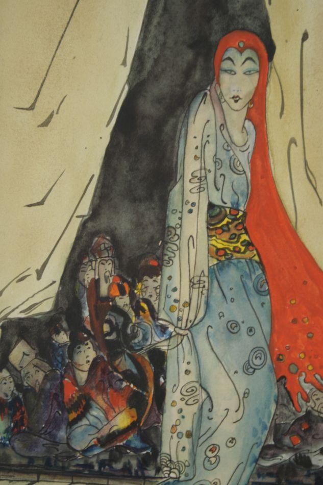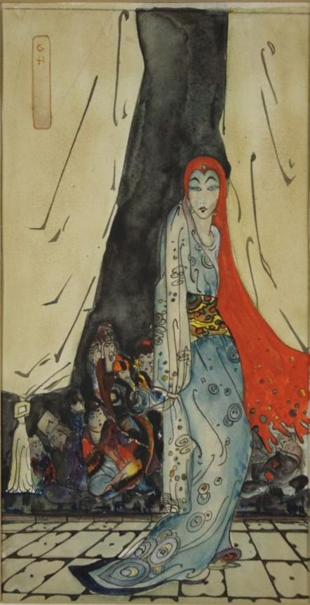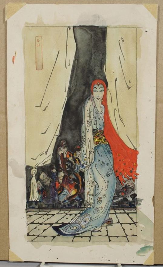 Attributed to Karl Hofer (1878 - 1955) Japanese figure on a stage Watercolor on paper,