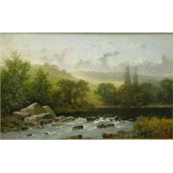 Attributed to Leigh Sampson oil on canvas, A Scene on the Kenmore River, near the Lakes of Killarney, inscribed verso and dated 1889, 10 x 16 ins. £200-300