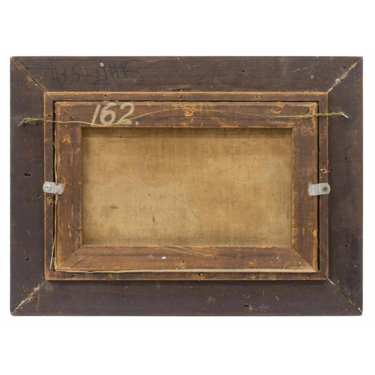Framed oil painting on canvas, Hills and Lake, unsigned, attributed to Max Eglau ( New York, 1825 - 1896 ) with a notation on the verso stretcher, 7.25" H X 11.75" W. Overall: 12 1/4" H X 16 1/4" W.