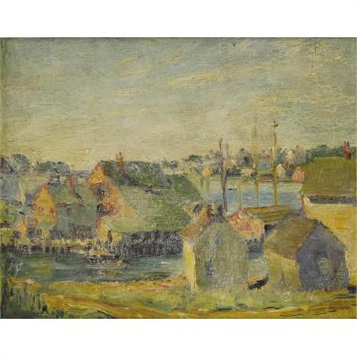 <B>Attributed to MAX KUEHNE (American, 1880-1986)</B></I><BR><I>Glouchester Harbor</B></I><BR>Oil on artist's board<BR>8 x 10 inches (20.3 x 25.4 cm)<BR>