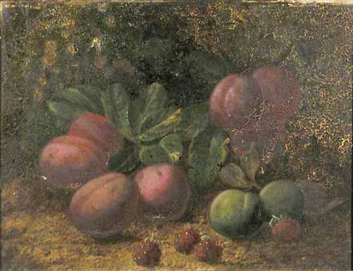 Attributed to Oliver Clare (1853-1927) oil on canvas, Still life of plums and raspberries, 8 x 10 ins. £500-700