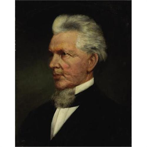 <B>Attributed to PAUL SAWYIER (American, 1865-1917)</B></I><BR><I>Portrait of J. McClusky Blayney, D.D.</B></I><BR>Oil on panel<BR>20 x 15-3/4 inches (50.8 x 40.0 cm)<BR> <B>Condition Report:</B> Some scattered strengthening, principally in face and hair, and a small area at lower left, panel originally rounded at top, additional panel added later to create top corners.<BR><BR><b>Shipping:</b> Requires 3rd Party Shipping (<a target="_blank" href="http://www.heritageauctions.com/common/shipping.php">view shipping information</a>)