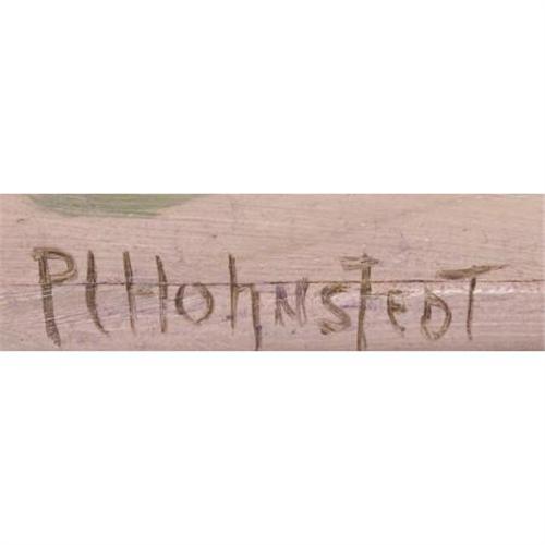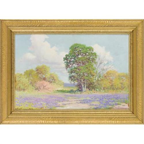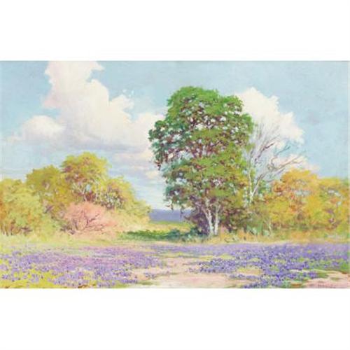 <B>Attributed to PETER LANZ HOHNSTEDT (American, 1872-1957)</B></I><BR><I>Field of Bluebonnets</B></I><BR>Oil on board<BR>20 x 29-3/4 inches (50.8 x 75.6 cm)<BR>Signed lower right:<I> P.L. Hohnstedt</B></I><BR> <BR>Inscribed verso: <I>This picture is probably the work of Mr. Hohnstedt, an artist who traveled in Texas in about 1940</B></I><BR><B>Condition Report:</B> Scattered strengthening, principally around edges, <BR><BR><b>Shipping:</b> Requires 3rd Party Shipping (<a target="_blank" href="http://www.heritageauctions.com/common/shipping.php">view shipping information</a>)