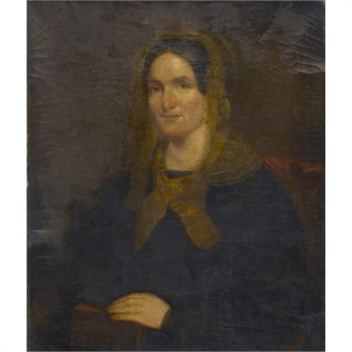 <B>Attributed to SARAH MIRIAM PEALE (American, 1800-1885)</B></I><BR><I>Portrait of a Woman</B></I>, circa 1880<BR>Oil on canvas<BR>30 x 25 inches (76.2 x 63.5 cm)<BR> <B>Condition Report:</B> Normal signs of wear as appropriate with age.<BR><BR><b>Shipping:</b> Framed - without Glass, Medium (<a target="_blank" href="http://www.heritageauctions.com/common/shipping.php">view shipping information</a>)