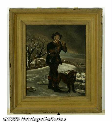<B>Attributed to THOMAS (of Bath) BARKER (English 1769- 1847)</B></I><BR>Man Smoking a Pipe<BR>Oil on canvas<BR>12.5in. x 10.25in.<BR><BR>Condition Report: Canvas has been cut from stretcher and wax-lined, two small specks of inpainting of legs of man, small areas of overpaint in upper right corner, old layer of discolored varnish<BR>