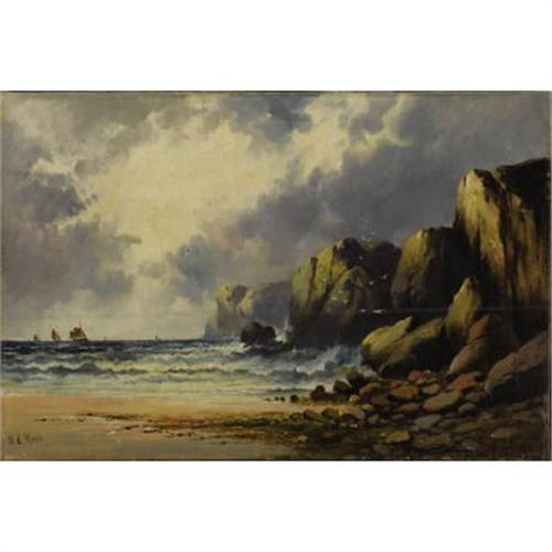 <B>Attributed to WILLIAM EDWARD WEBB </B></I>(British 1860-1903)<BR><I>Seascape</B></I><BR>Oil on canvas<BR>16 x 24 inches (40.6 x 61.0 cm)<BR>Signed at lower left <I>W.E. Webb</B></I><BR> <B>Condition Report:</B> Stain line running horizontally across lower half of canvas.<BR><BR><b>Shipping:</b> Requires 3rd Party Shipping (<a target="_blank" href="http://www.heritageauctions.com/common/shipping.php">view shipping information</a>)