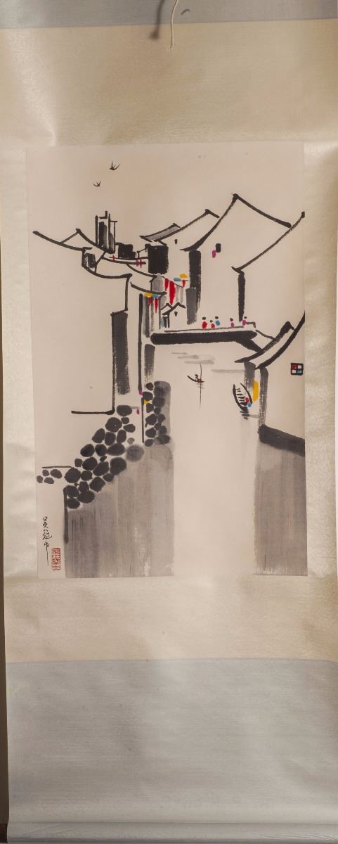 A Fine Ink Painting On Paper, Depicting With The Vivid Image Of A Neighborhood In South Area Of China.