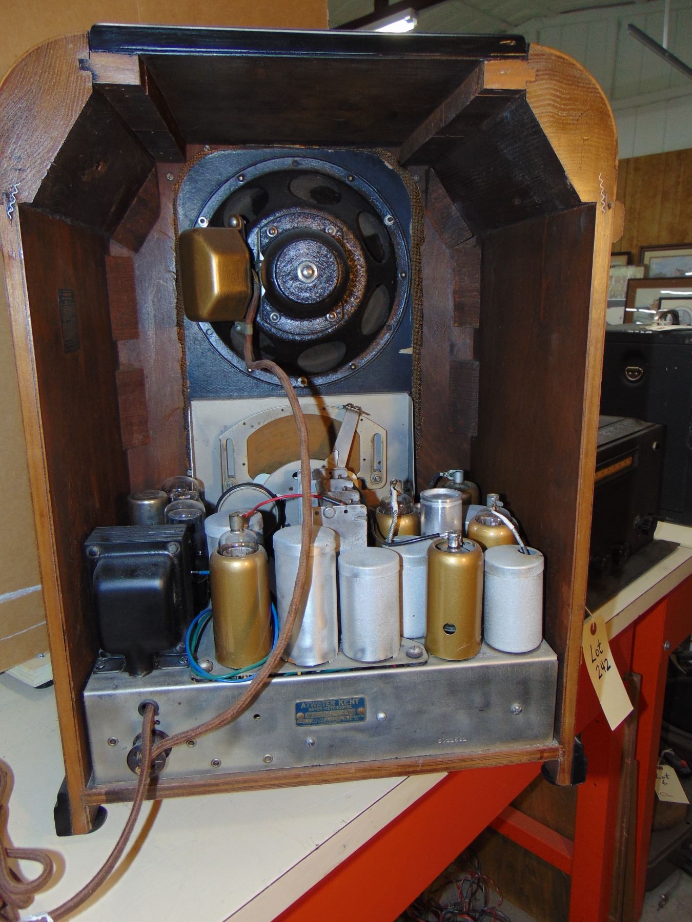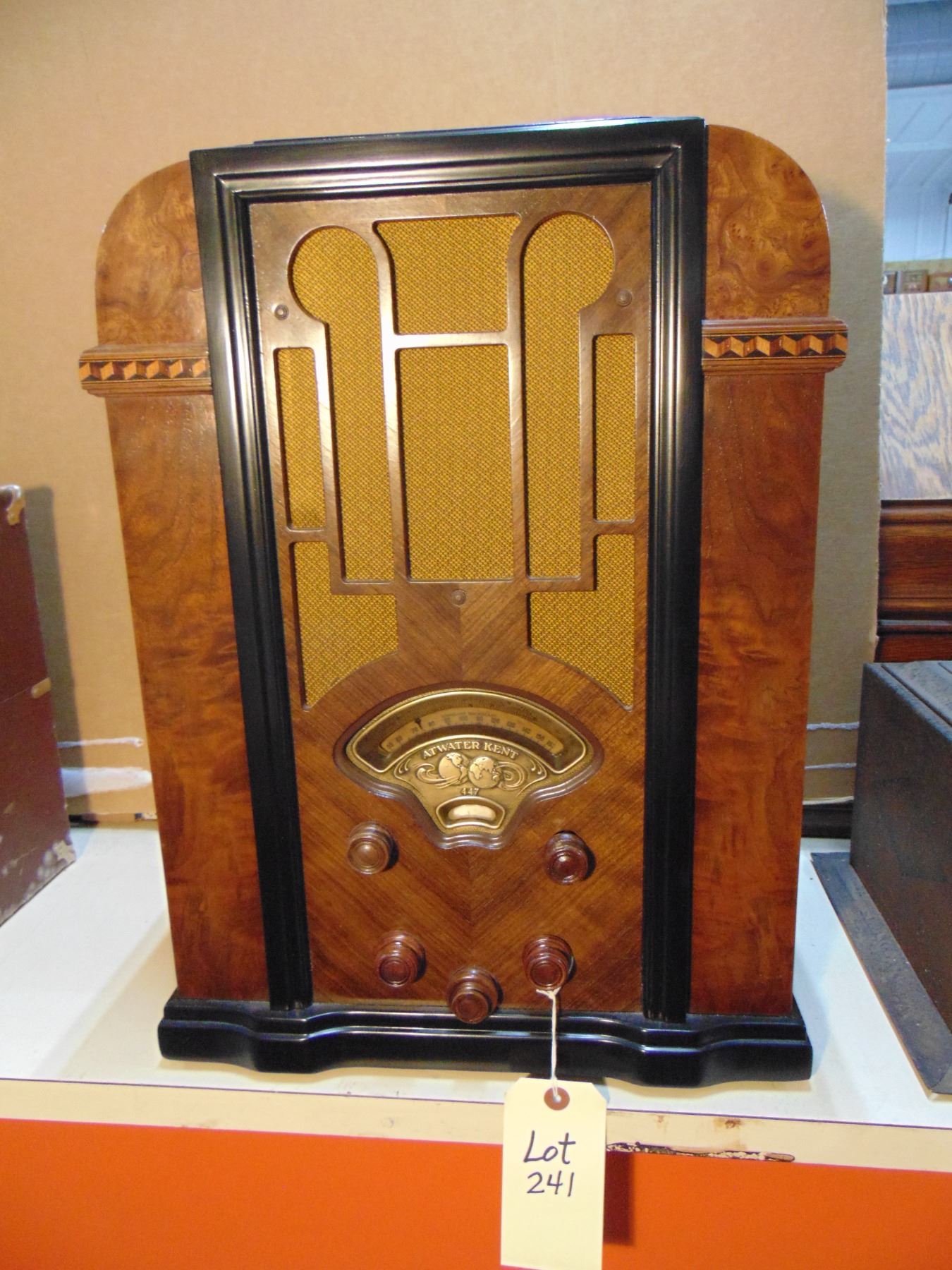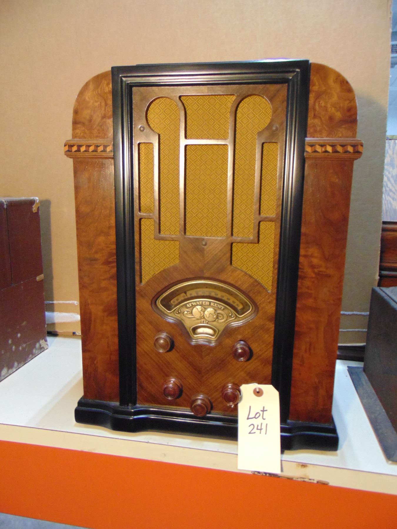 Atwater Kent large tombstone model 447; this radio is fully restored inside and out. Extremely nice and rare radio; You would expect it to work, and it does! Also, the side views of this radios show horizontal lines...they are the reflection from the radio sitting next to it on each side. This is an excellent refinish job.
