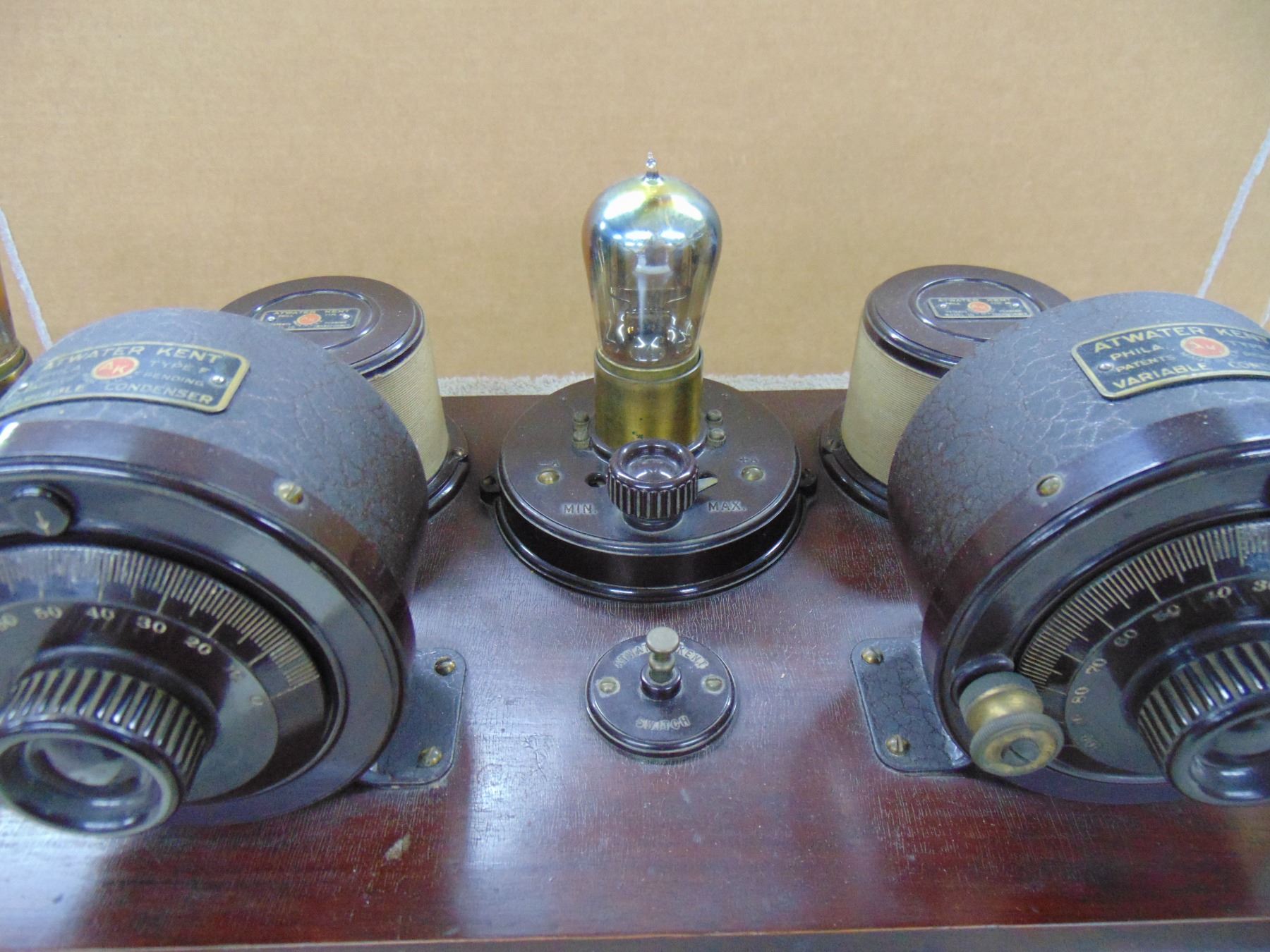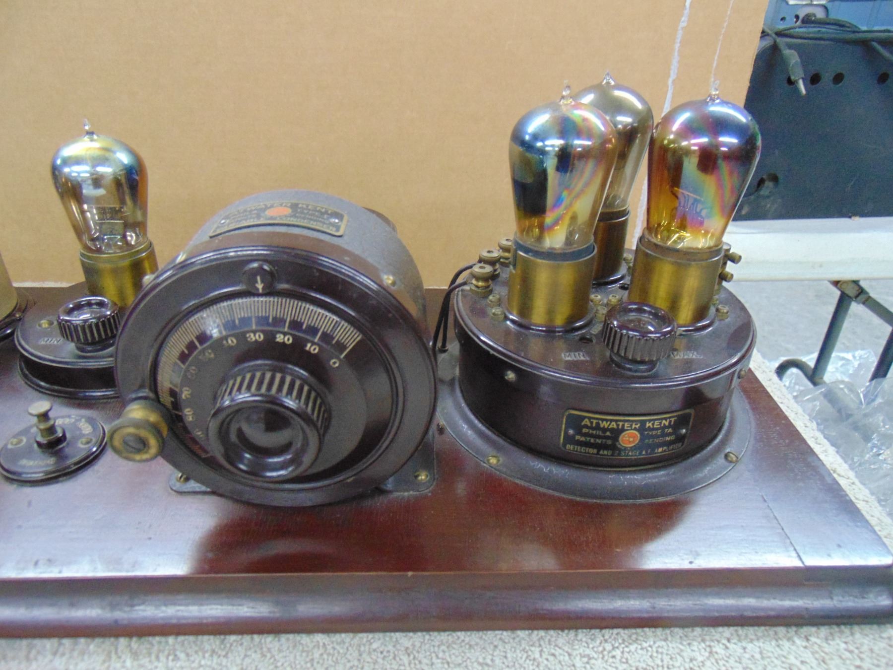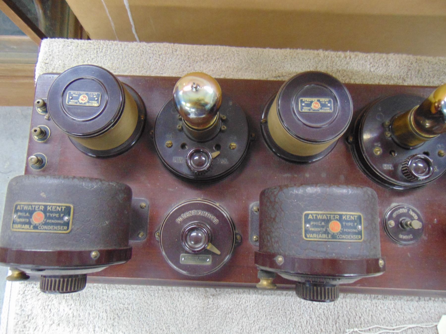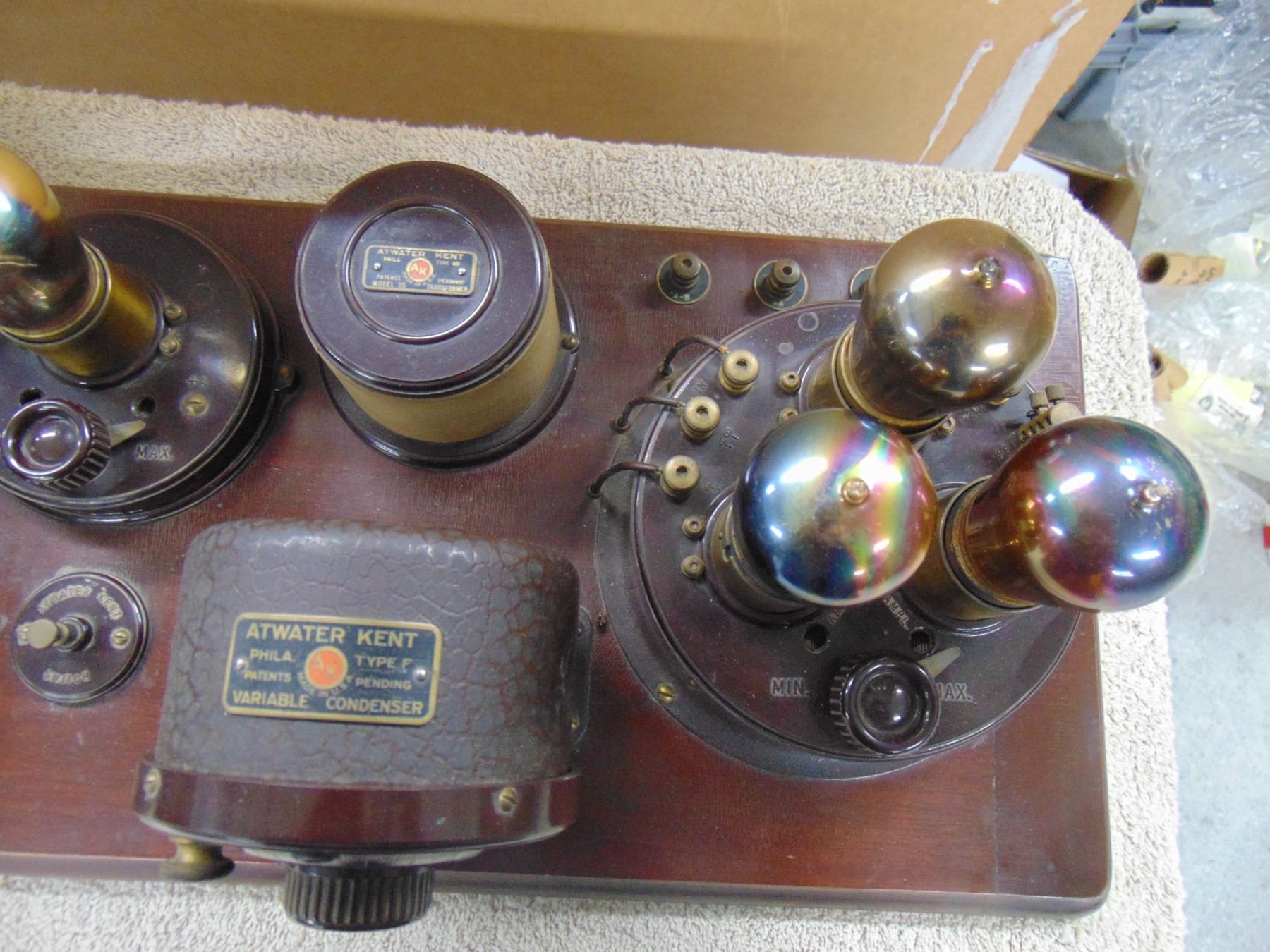 Atwater Kent breadboard; model 10 (4600); early model; very nice condition; includes brass base tipped rainbow tubes