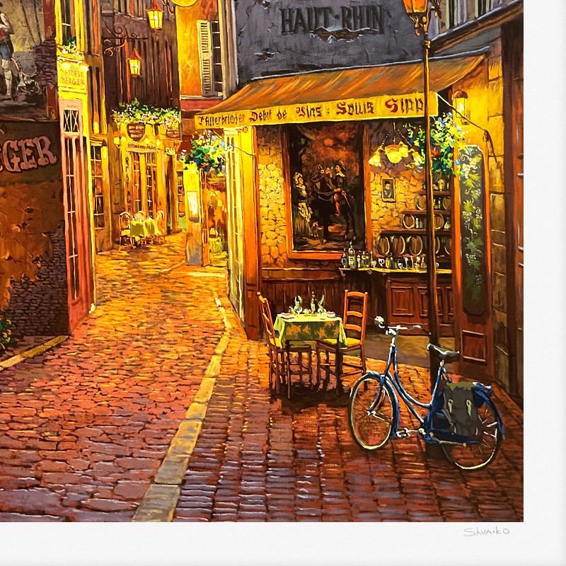 "Au Petit Marquis" is a limited edition printer's proof serigraph on paper by Viktor Shvaiko, numbered 1/3 and hand signed by the artist. Includes Letter of Authenticity. Measures approx. 32.5" x 46" (border), 28" x 42" (image).