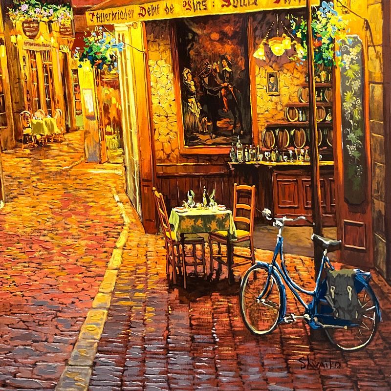 "Au Petit Marquis" is a hand embellished limited edition printers proof on stretched canvas by Viktor Shvaiko numbered and hand signed by the artist. Includes Letter of Authenticity. Measures approx. 28" x 42" (image). There may be minor wear on the corners and edges (chipping and/or hairline cracks) that will be concealed when framed.