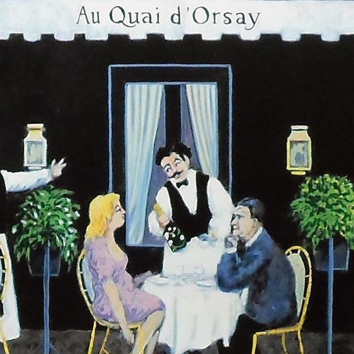 "Au Qui D Orsay" is a limited edition serigraph on paper by Guy Buffet. It is numbered, hand-signed by the artist, and comes with a Certificate of Authenticity. Measures approx. 34.5" x 28" (image).