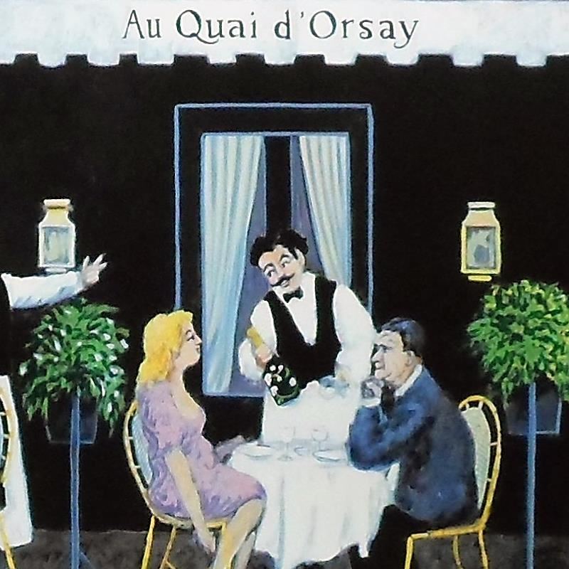 "Au Qui D Orsay" is a limited edition serigraph on paper by Guy Buffet. It is numbered, hand-signed by the artist, and comes with a Certificate of Authenticity. Measures approx. 34.5" x 28" (image).