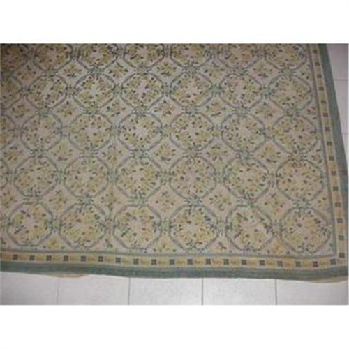 Flat Woven Carpet 10' x 9' 6". Aubusson, with all over floral motif, Green Yellow and blue on a cream field. Linen backing.