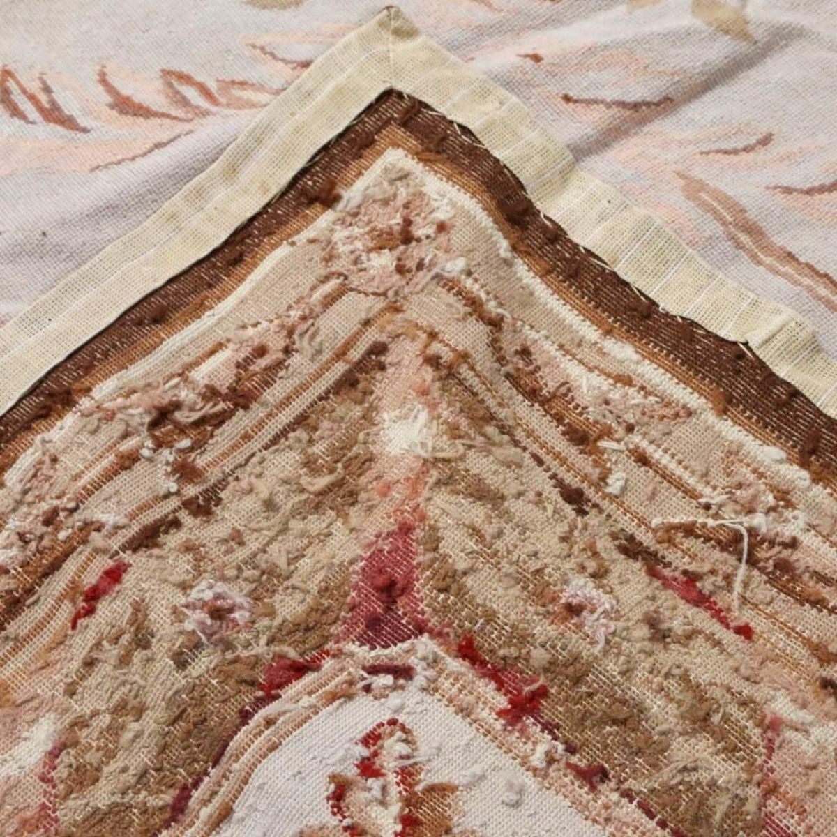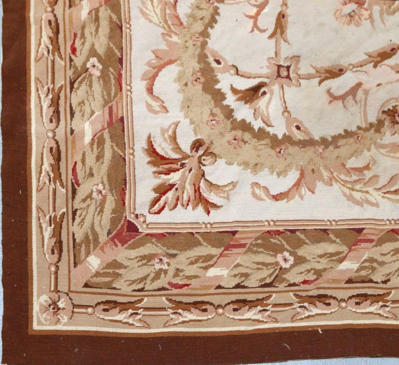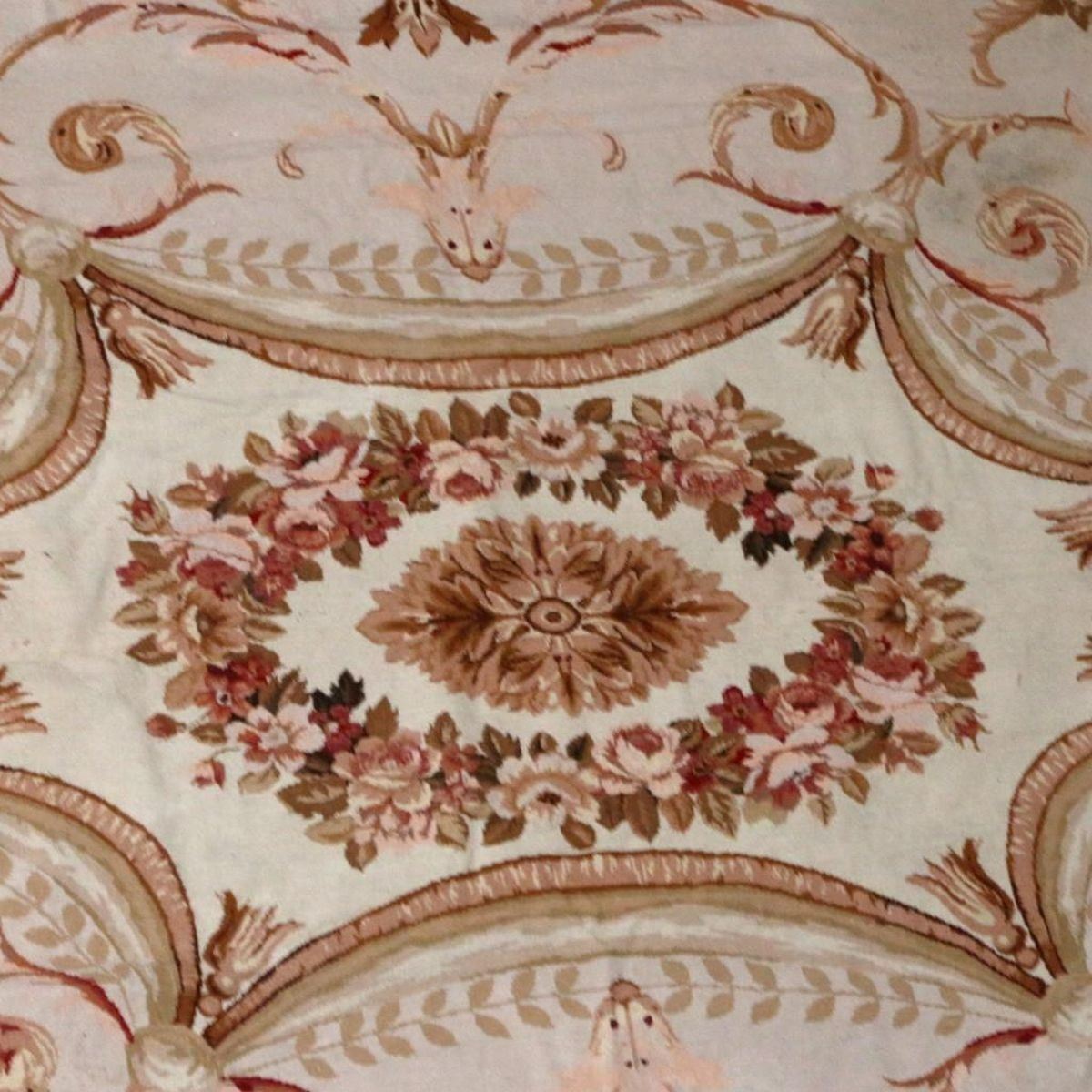 Aubusson Floral Tapestry, 19th Century. The central floral medallion within scrolling ribbon banding. Size: 9ft.2in. (2.8m) h 14ft. 2in. (4.3m)