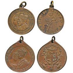 George V Coronation Medal, Copper, obv. conjoined busts of George V and Mary, rev. Finlay Fleming & Co. Rangoon, 1911; George V Coronation Medal...