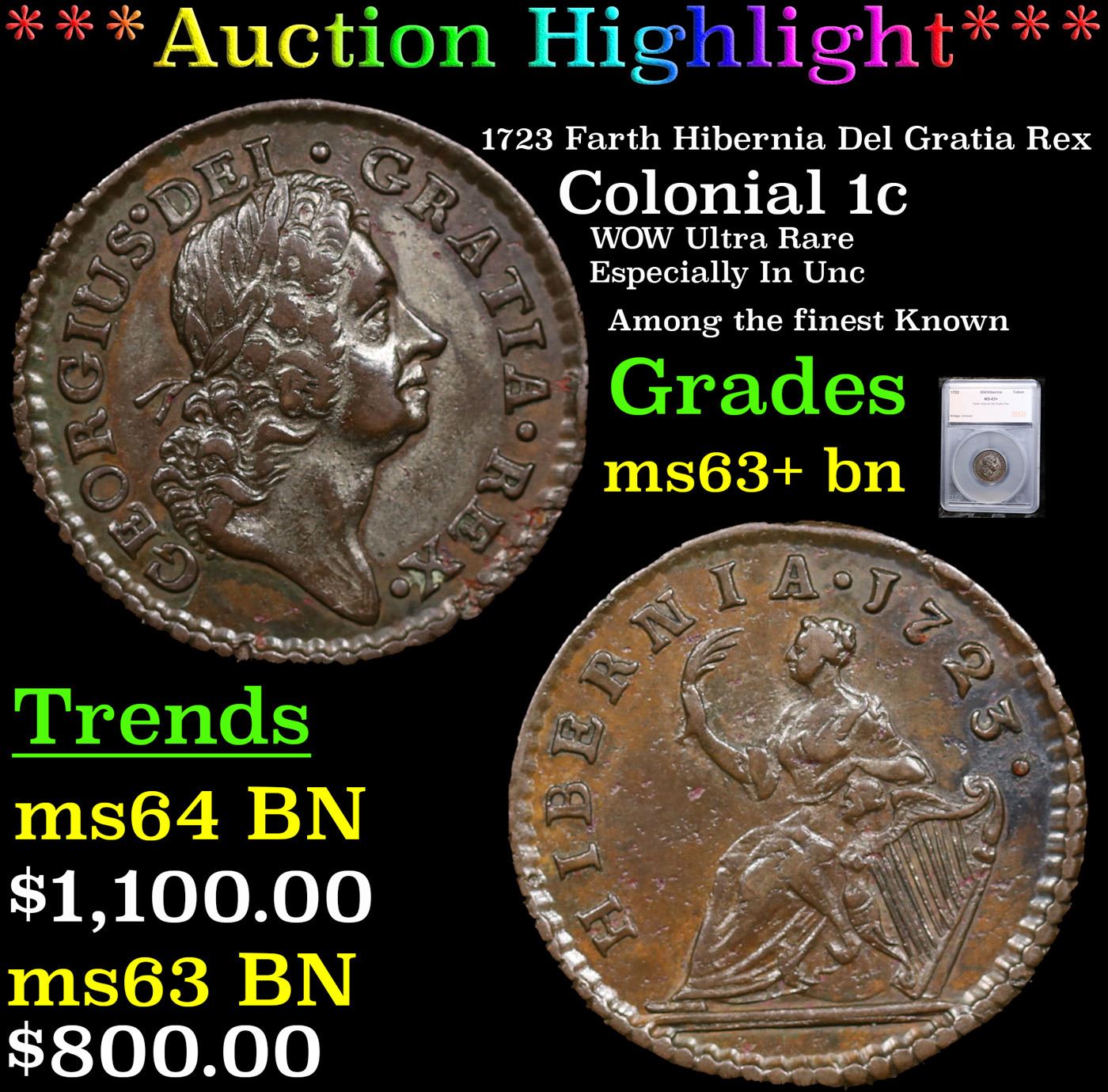 ***Auction Highlight*** 1723 Farth Hibernia Del Gratia Rex Colonial Cent 1c Grades Select+ Unc BN B