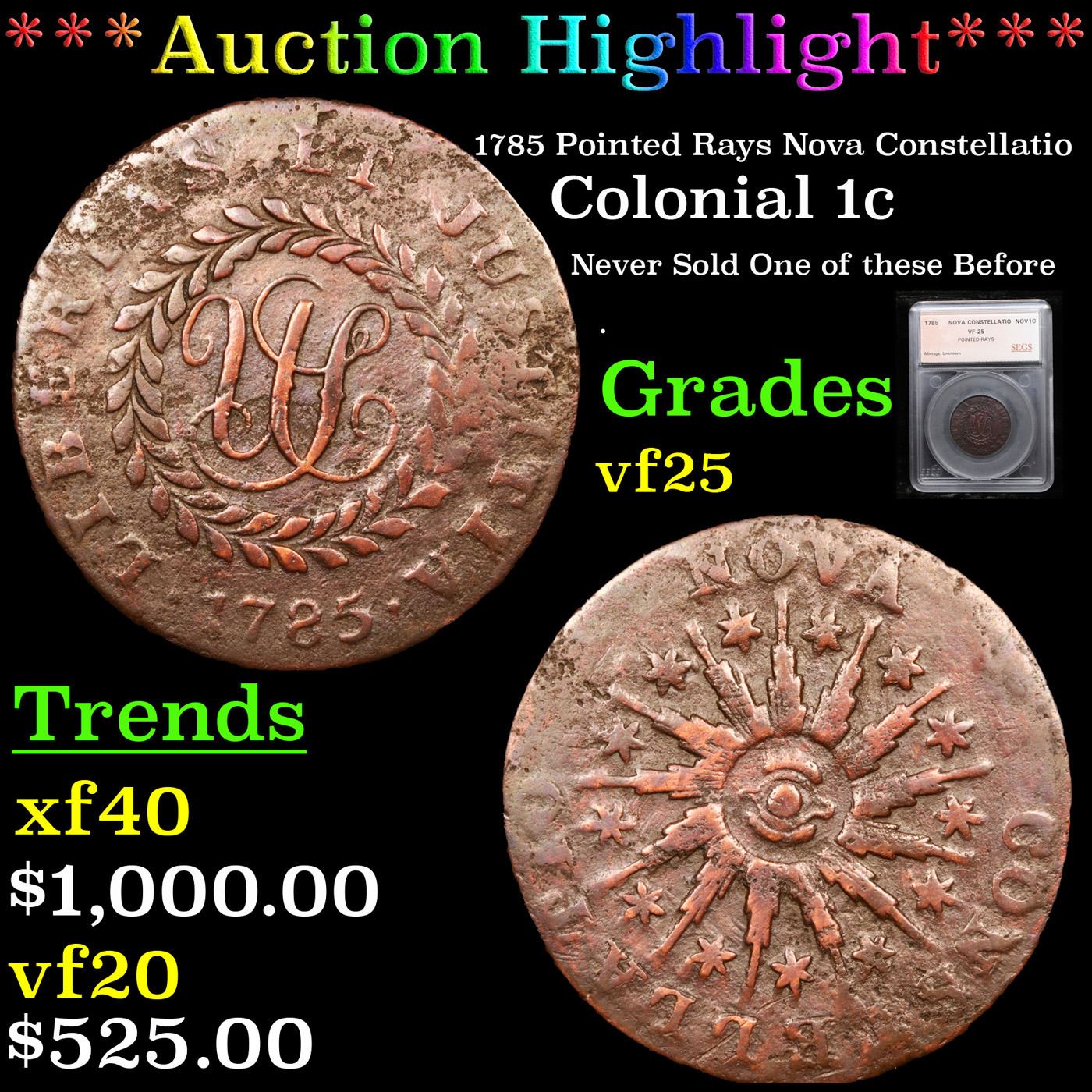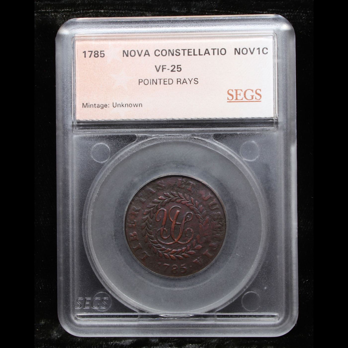 ***Auction Highlight*** 1785 Pointed Rays Nova Constellatio Colonial Cent 1c Graded vf25 By SEGS (fc
