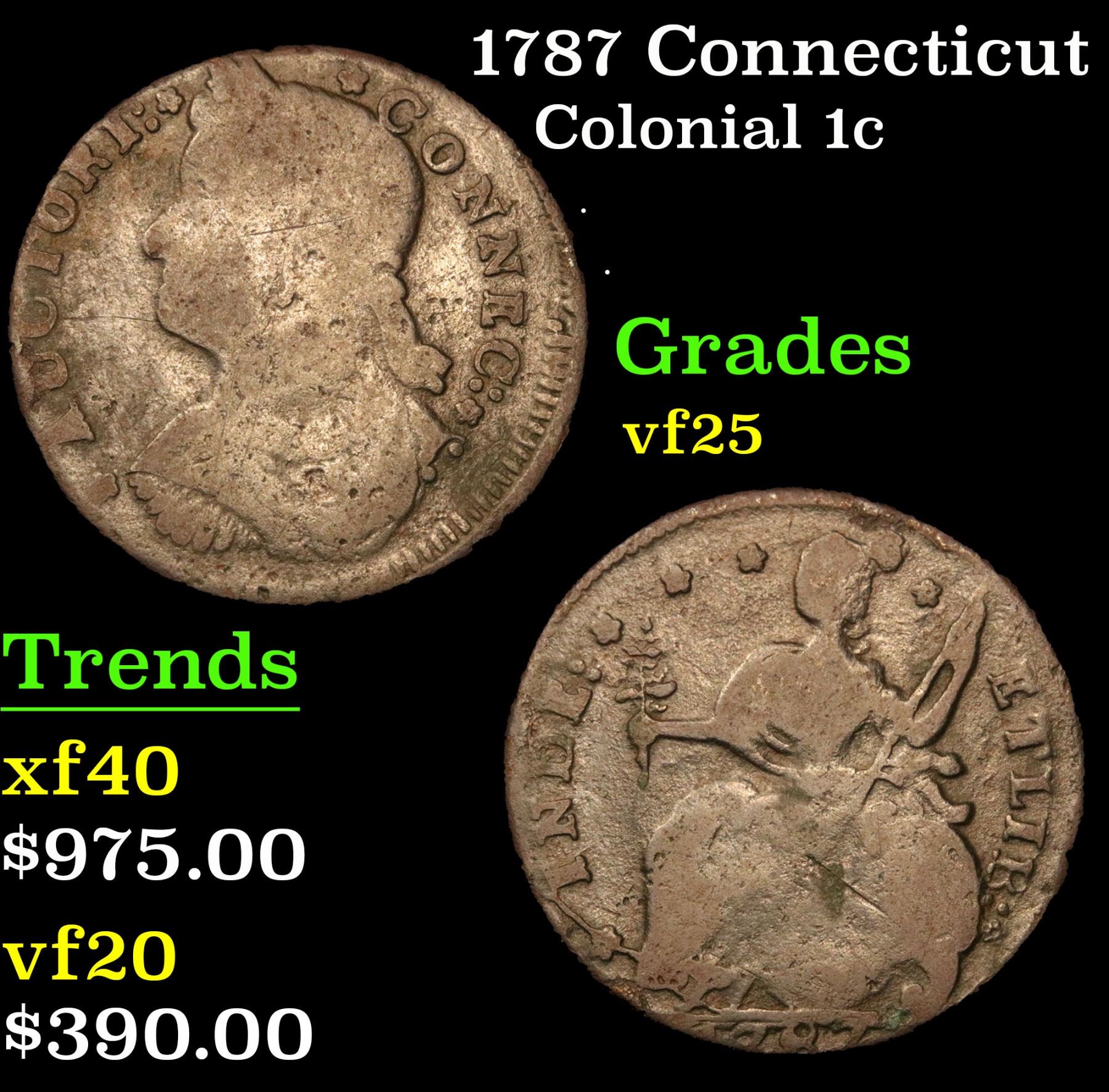 ***Auction Highlight*** 1787 Connecticut Colonial Cent 1c Grades vf+.