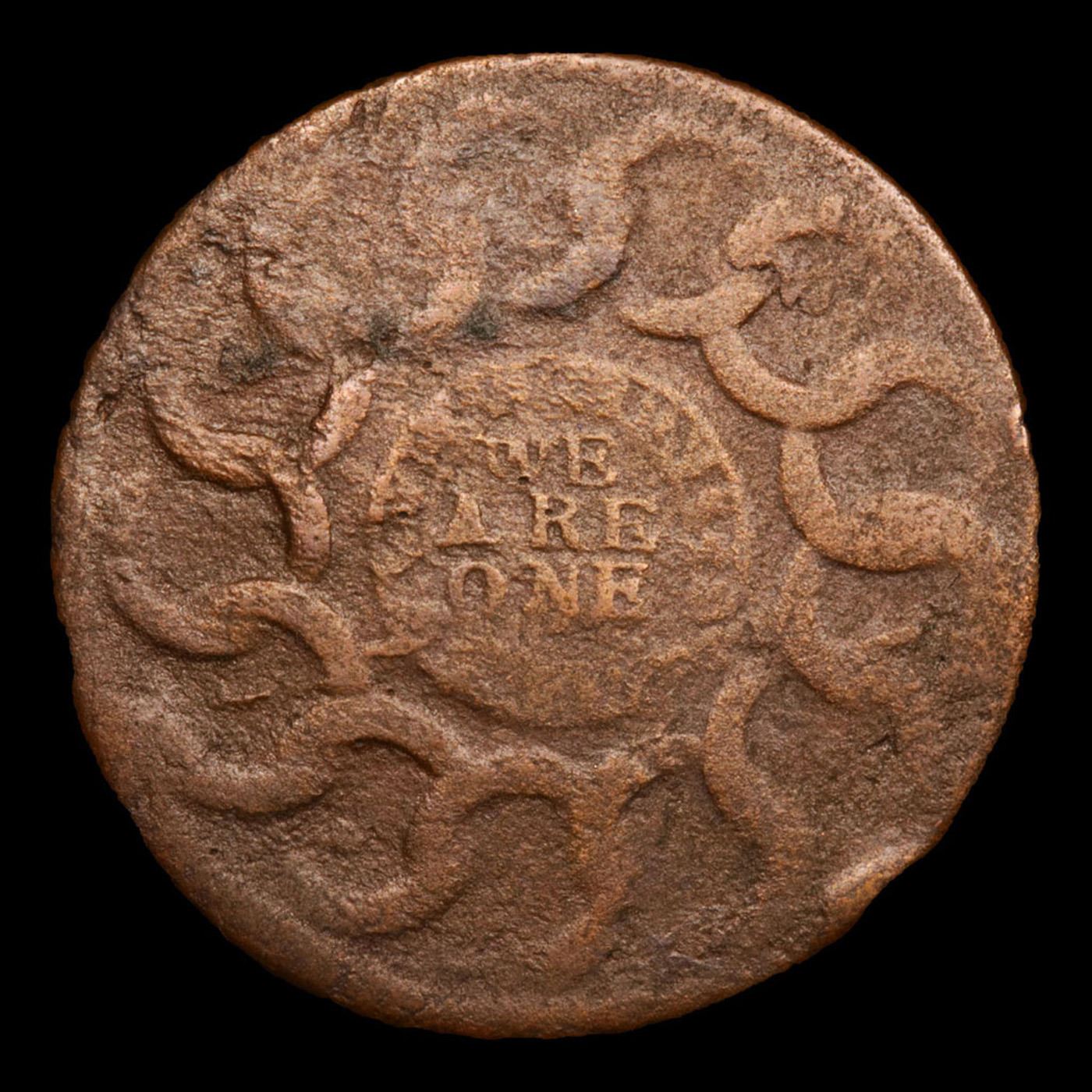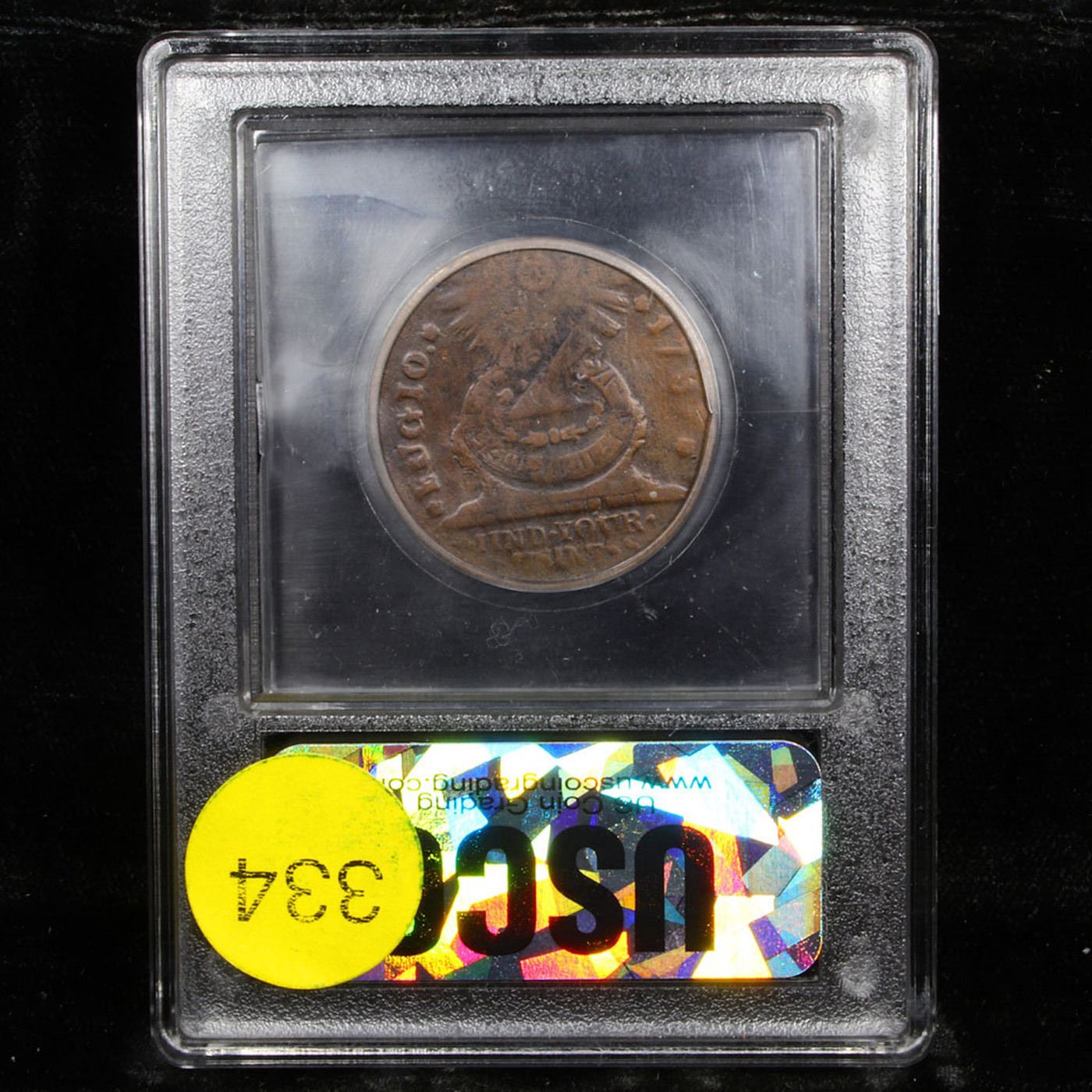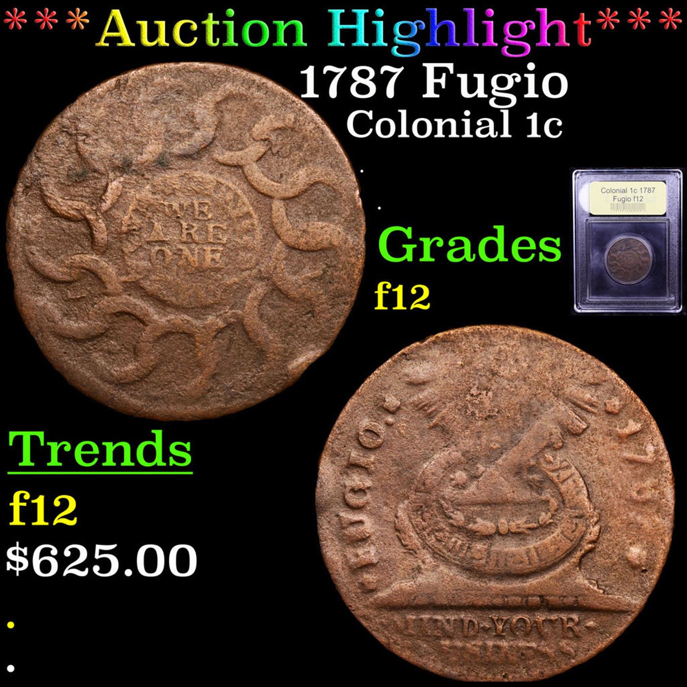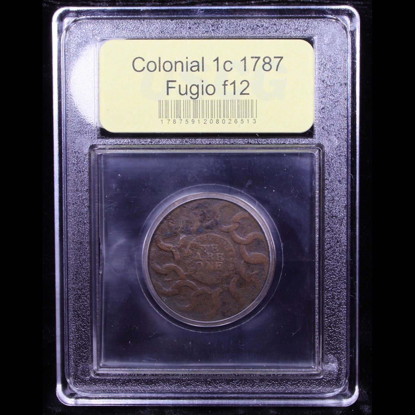 ***Auction Highlight*** 1787 Fugio Colonial Cent 1c Graded f, fine BY USCG.