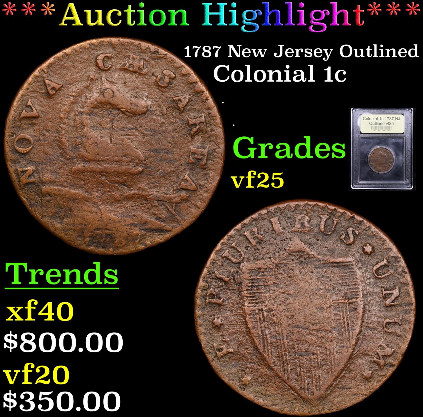 ***Auction Highlight*** 1787 New Jersey Outlined Colonial Cent 1c Graded vf+ By USCG (fc)