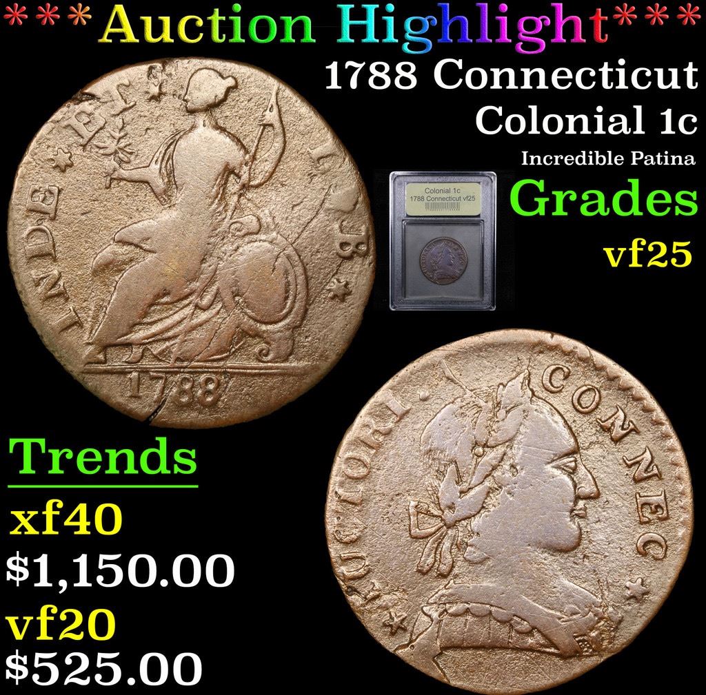 ***Auction Highlight*** 1788 Connecticut . . Colonial Cent 1c Graded vf+ By USCG.