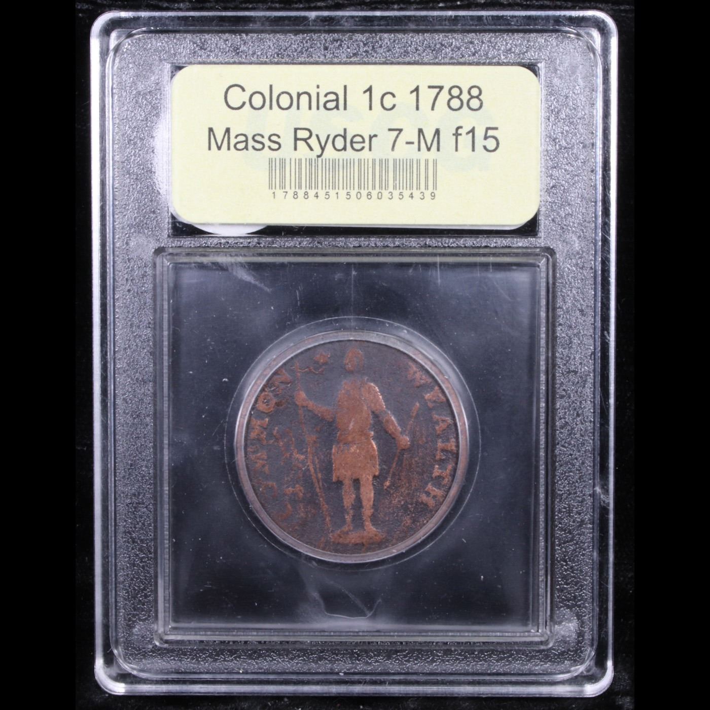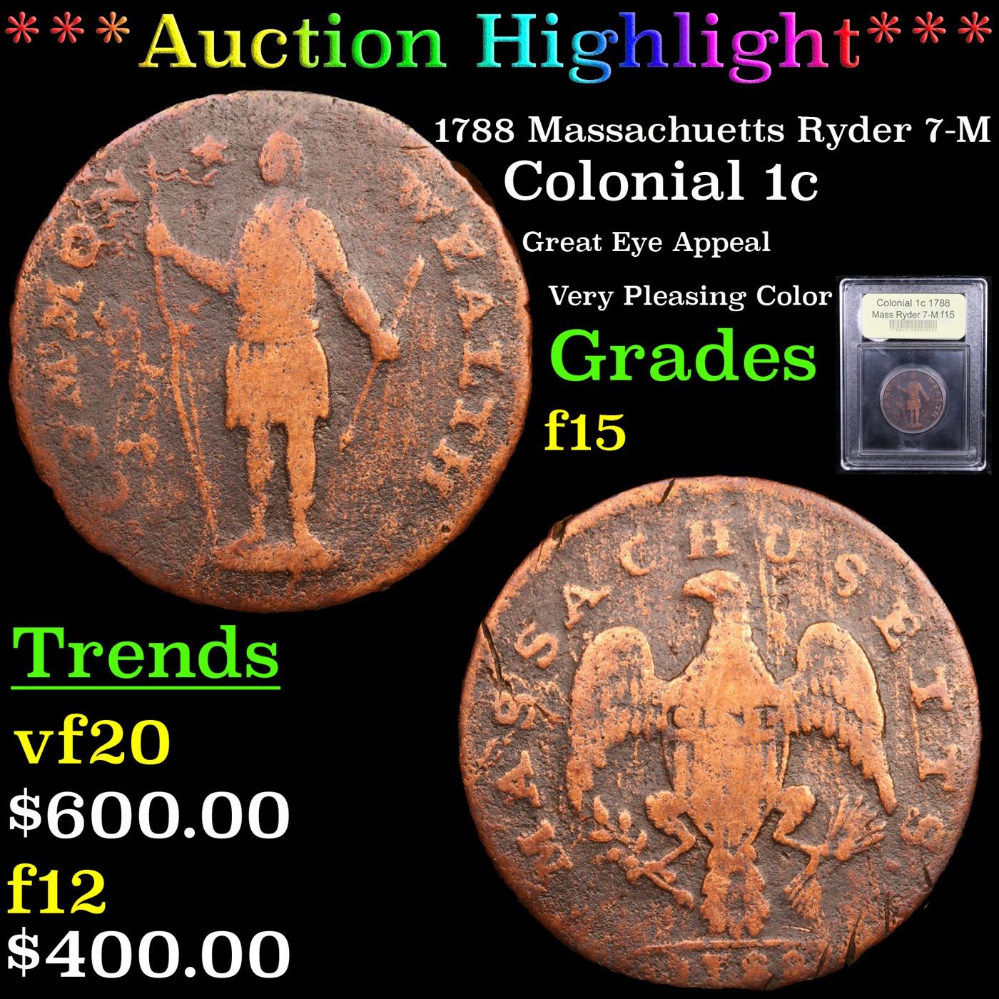 ***Auction Highlight*** 1788 Massachuetts Ryder 7-M Colonial Cent 1c Graded f+ By USCG. A Corey's Pick, Bid to Win Coin