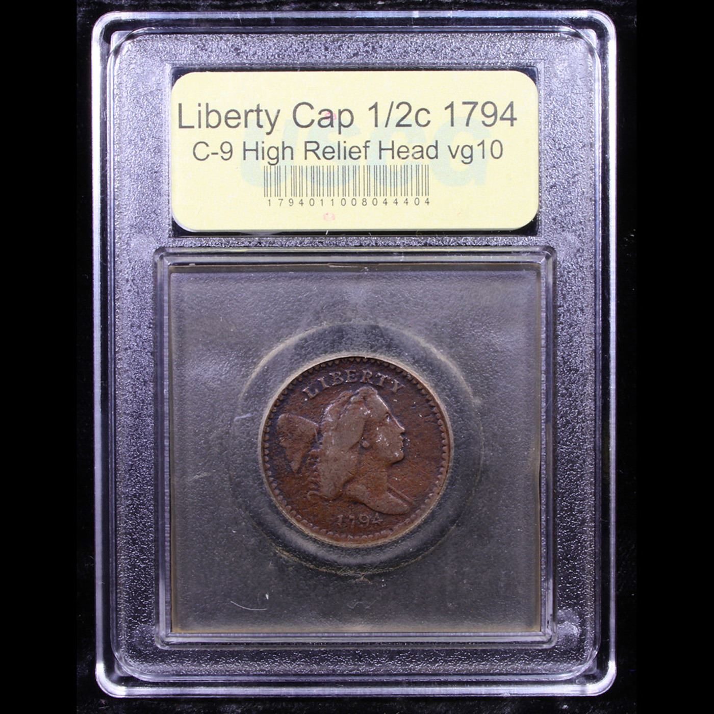 ***Auction Highlight*** 1794 Cohen 9 R2 Liberty Cap half cent 1/2c Graded vg+ By USCG (fc)