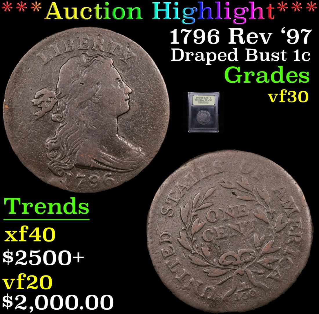 ***Auction Highlight*** 1796 Rev '97 . . Draped Bust Large Cent 1c Graded vf++ By USCG.