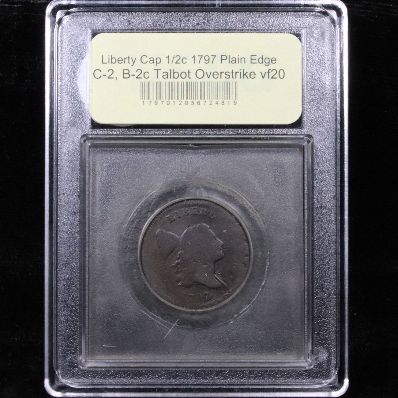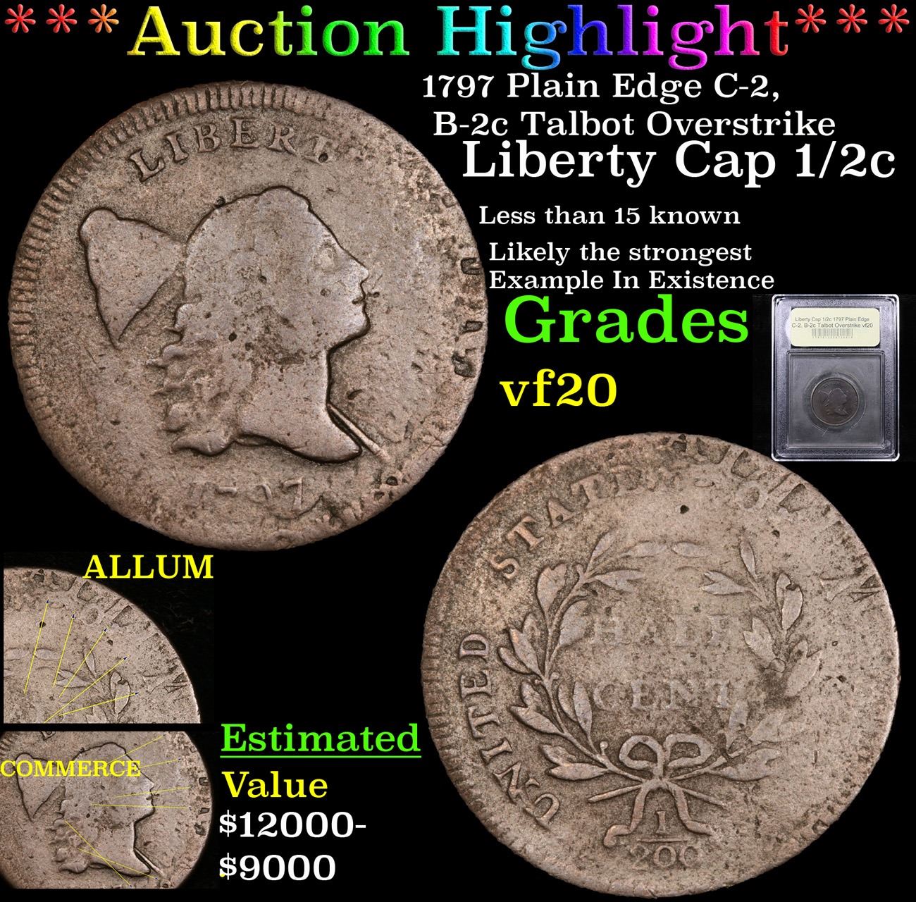***Auction Highlight*** 1797 Plain Edge C-2, B-2c Talbot Overstrike Liberty Cap half cent 1/2c Grade
