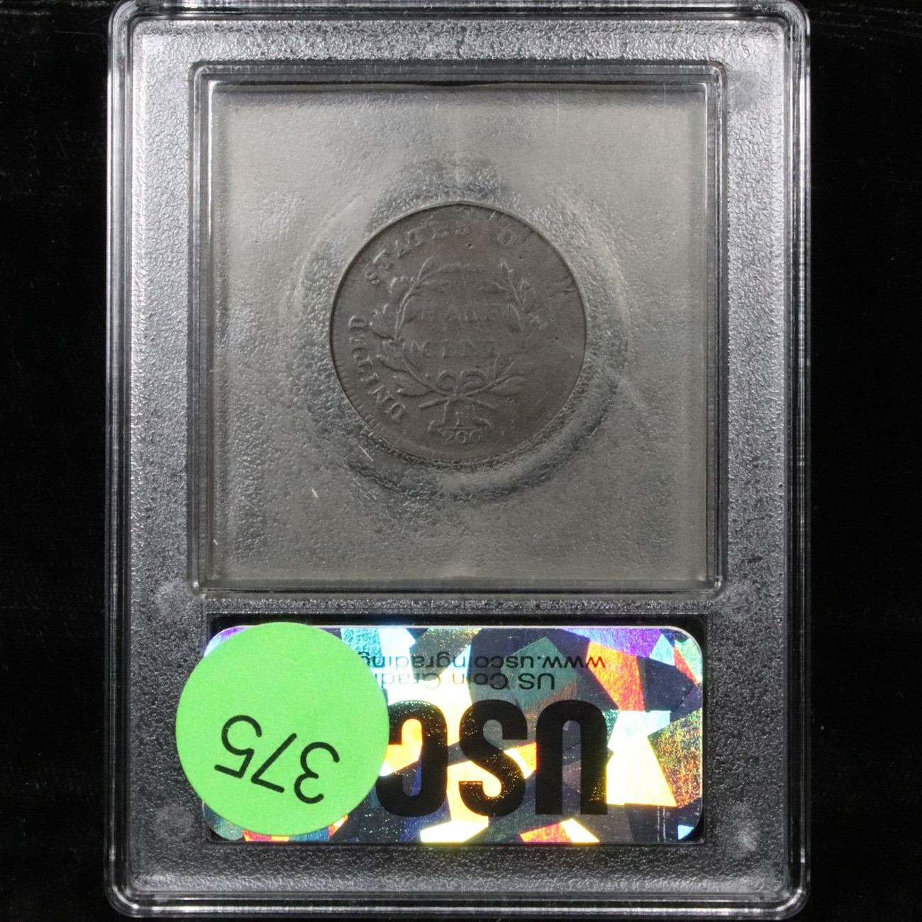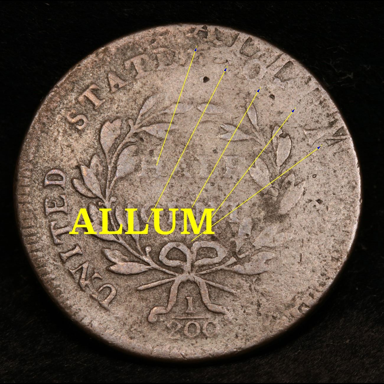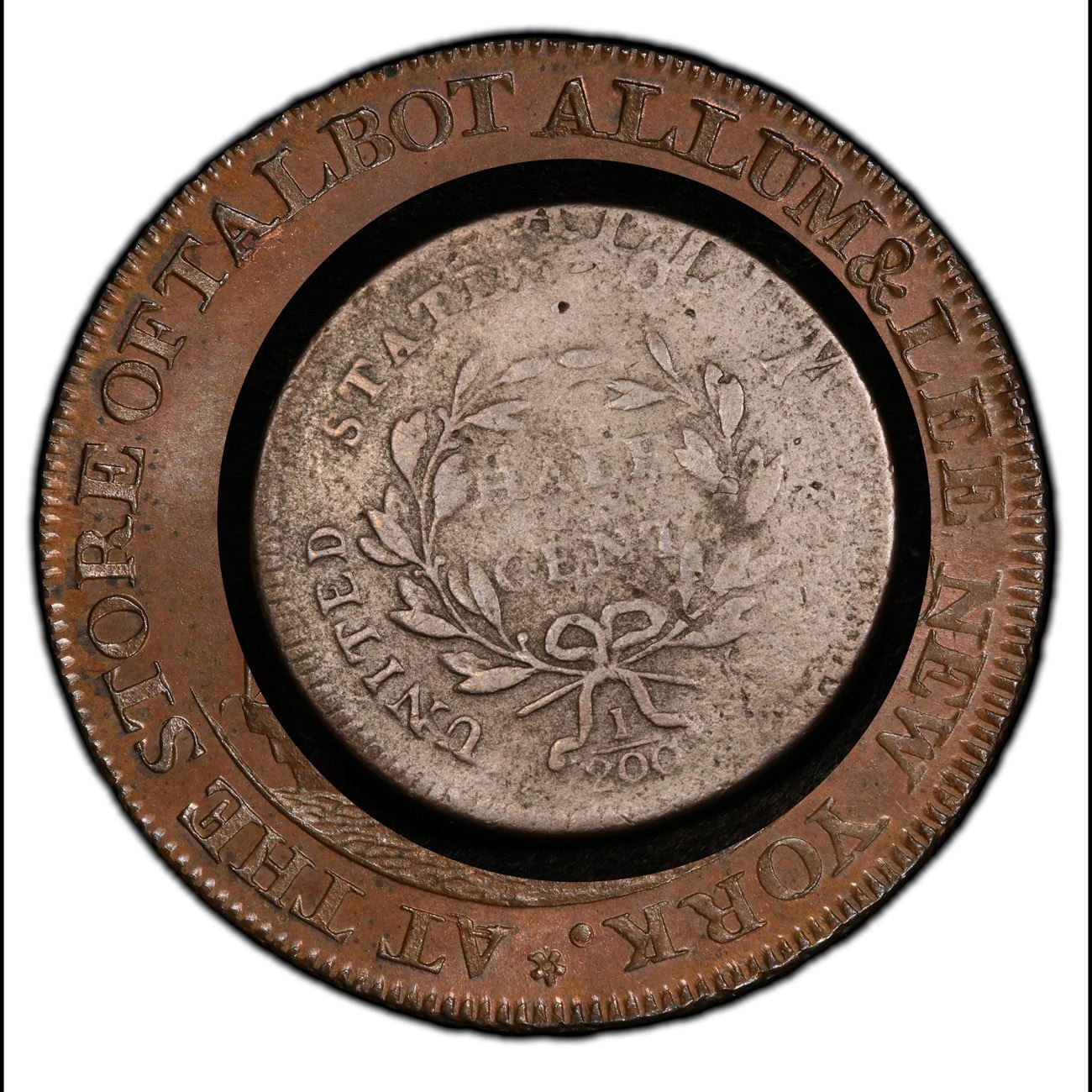 ***Auction Highlight*** 1797 Plain Edge C-2, B-2c Talbot Overstrike Less than 15 known Likely the strongest Example In Existence Liberty Cap half cent 1/2c Graded vf, very fine By USCG. Up for auction is an Incredible find. It is a 1797 Rare Half Cent, of which approximately 500 examples of all types have survived. Of these 500, approximately 200, are the plain edge variety. Quoting from Walter Breen “The known population for the 1797 Liberty Cap Half Cent, W-2 (plain edge) is split into three groups, including those on thin planchets with some 250 to 400 pieces known; thick planchets with no trace of an under type enjoying some 50 to 75 pieces extant; and the rarest of the three, thick planchets with traces of a cent under type, of which perhaps just eight to 12 coins are known. Up for auction is one of these 8-12 pieces. Additionally, I have researched this thoroughly, and it is the Talbot Allum cent that was cut down in which the coin was struck over. I have looked at every known example that has come to auction in the last 20 years, and none that I saw has any obvious remnant showing of the old cent. Many had trace elements that can be through careful analysis determined to be struck over, but none were obvious. I also found that the more elements of the original coin showing the higher the auction results. Coins that even had a trace obvious element of the old coin went up not hundreds but thousands. Well, Sandi and I were blown away with this coin at hand. On the reverse, you can clearly see, without aid of any magnification, the large clear letters ALLUM. On the obverse are the fragments of design elements that the other examples determined to be on a Talbot Allum, but none are clear, and would require significant investigation and supposition. But no one can mistake the BOLD and Clear “ALLUM” on the reverse. Incredible piece of American and numismatic history. Finally, the new owner of this magnificent piece of history will probably enjoy the back story, so since I found it, I’ll offer it now :In 1794 William Talbot, William Allum, and James Lee, joined into a partnership to open an East India trading company located at 241 Water Street in New York City. They commissioned and created the first American merchant token produced on a large scale. In fact, so many were produced, the company had more than they could accommodate. On April 23, 1795, William Talbot sold the Philadelphia mint 1,076 pounds of the tokens (about 52,000), mostly the 1795 variety. The mint, desperately seeking copper stock, used these tokens as planchets for the 1795 half cents variety without poles (which were actually minted in the spring of 1796). In 1796 Lee retired, and soon thereafter the firm dissolved. On December 10, 1796, the Philadelphia mint purchased all of the remaining stock of these tokens (1,914 pounds) from Mr. Talbot and used them as planchets for 1797 half cents. Virtually all of which had no trace of the original design remaining when the new striking was complete. A Corey's Pick, Bid to Win, Don't let it get Away, you might not find its equal Coin. I give this coin my highest recommendation