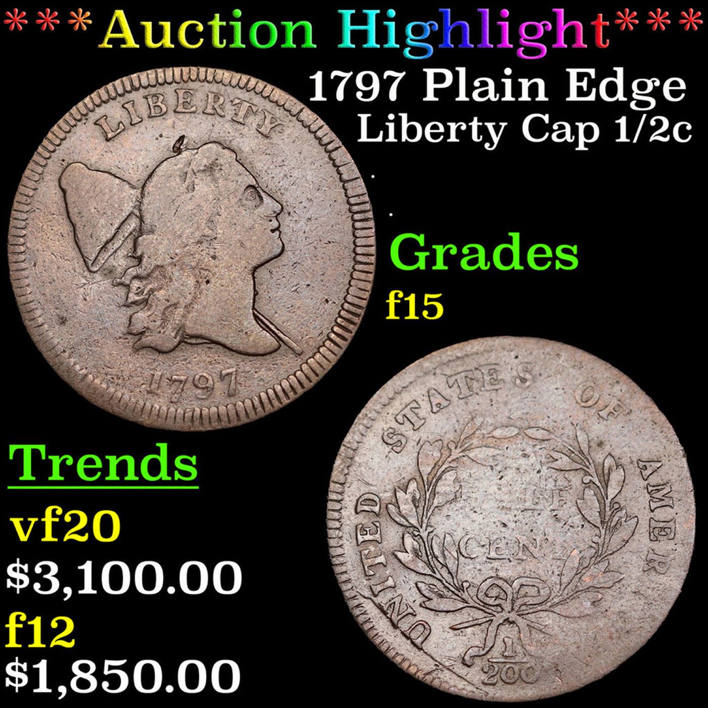 ***Auction Highlight*** 1797 Plain Edge Liberty Cap half cent 1/2c Graded f15 By SEGS (fc)