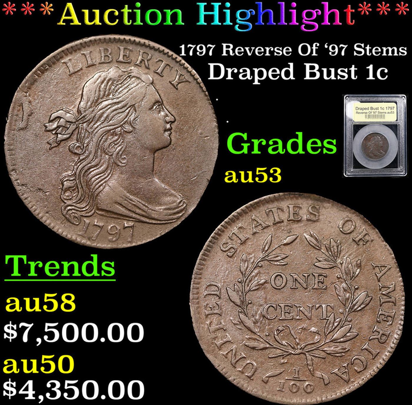 ***Auction Highlight*** 1797 Reverse Of '97 Stems Draped Bust Large Cent 1c Graded Select AU BY USCG.