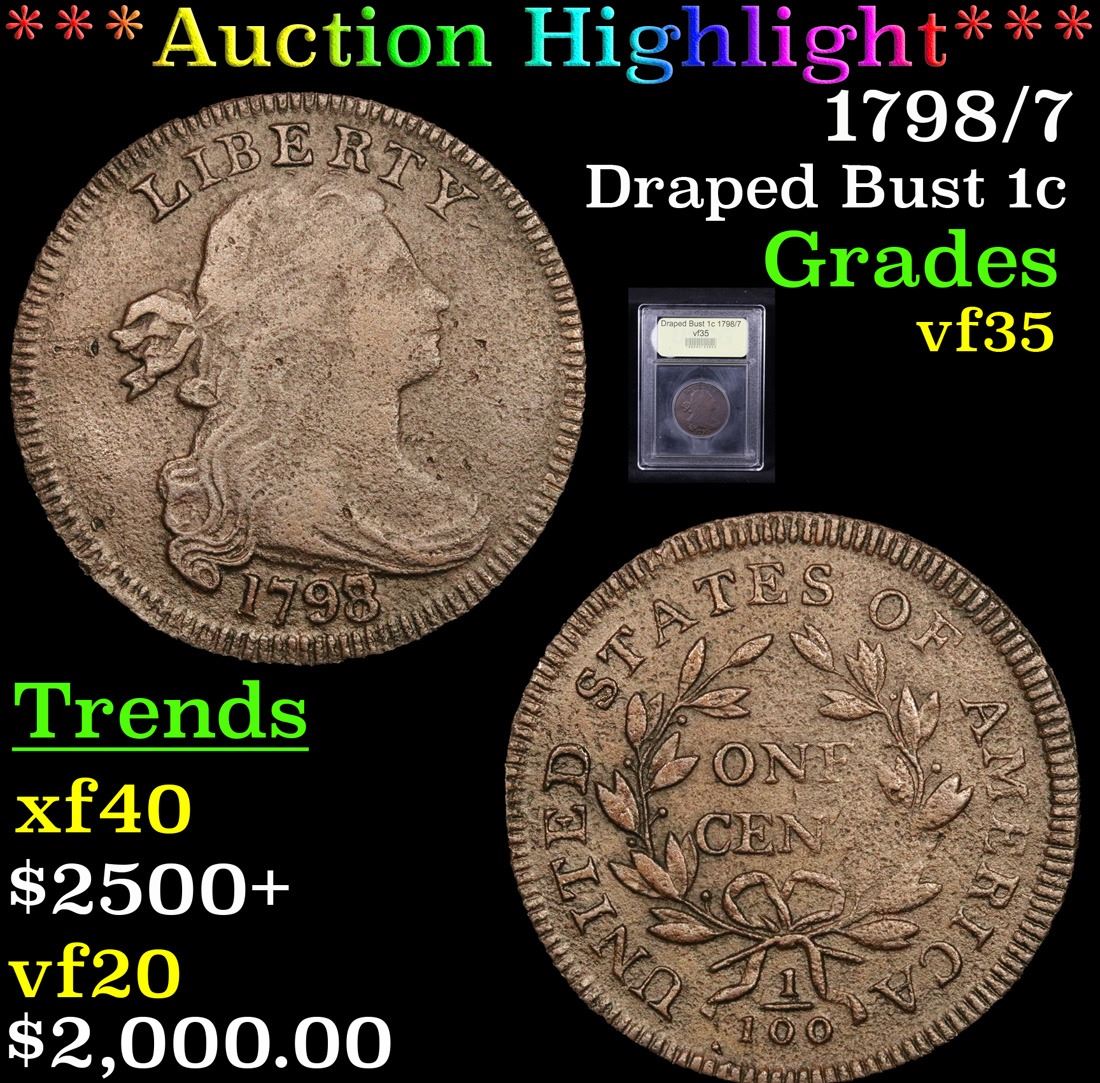 ***Auction Highlight*** 1798/7 . . Draped Bust Large Cent 1c Graded vf++ By USCG. A Corey's Pick, Bid to Win, Don't let it get Away, you might not find its equal Coin