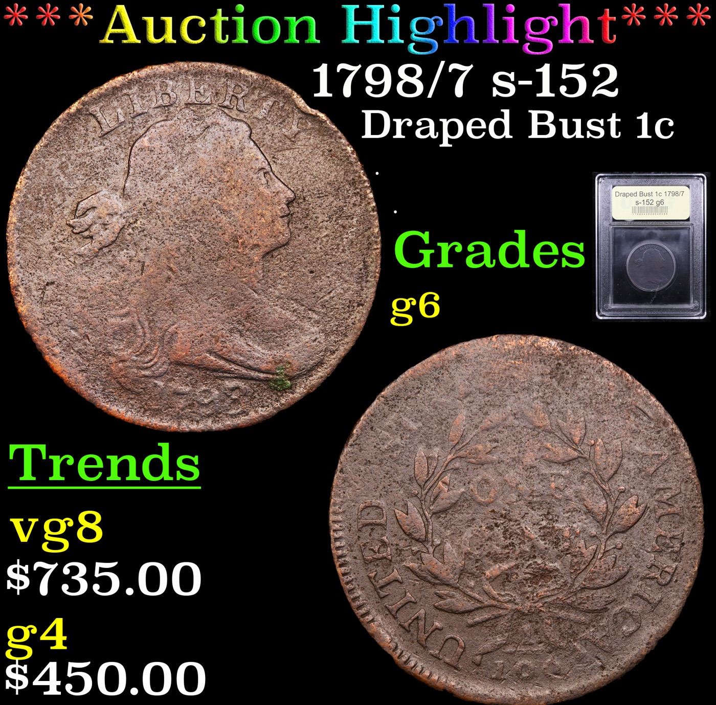 ***Auction Highlight*** 1798/7 s-152 Draped Bust Large Cent 1c Graded g+ By USCG. A Corey's Pick, Bid to Win Coin