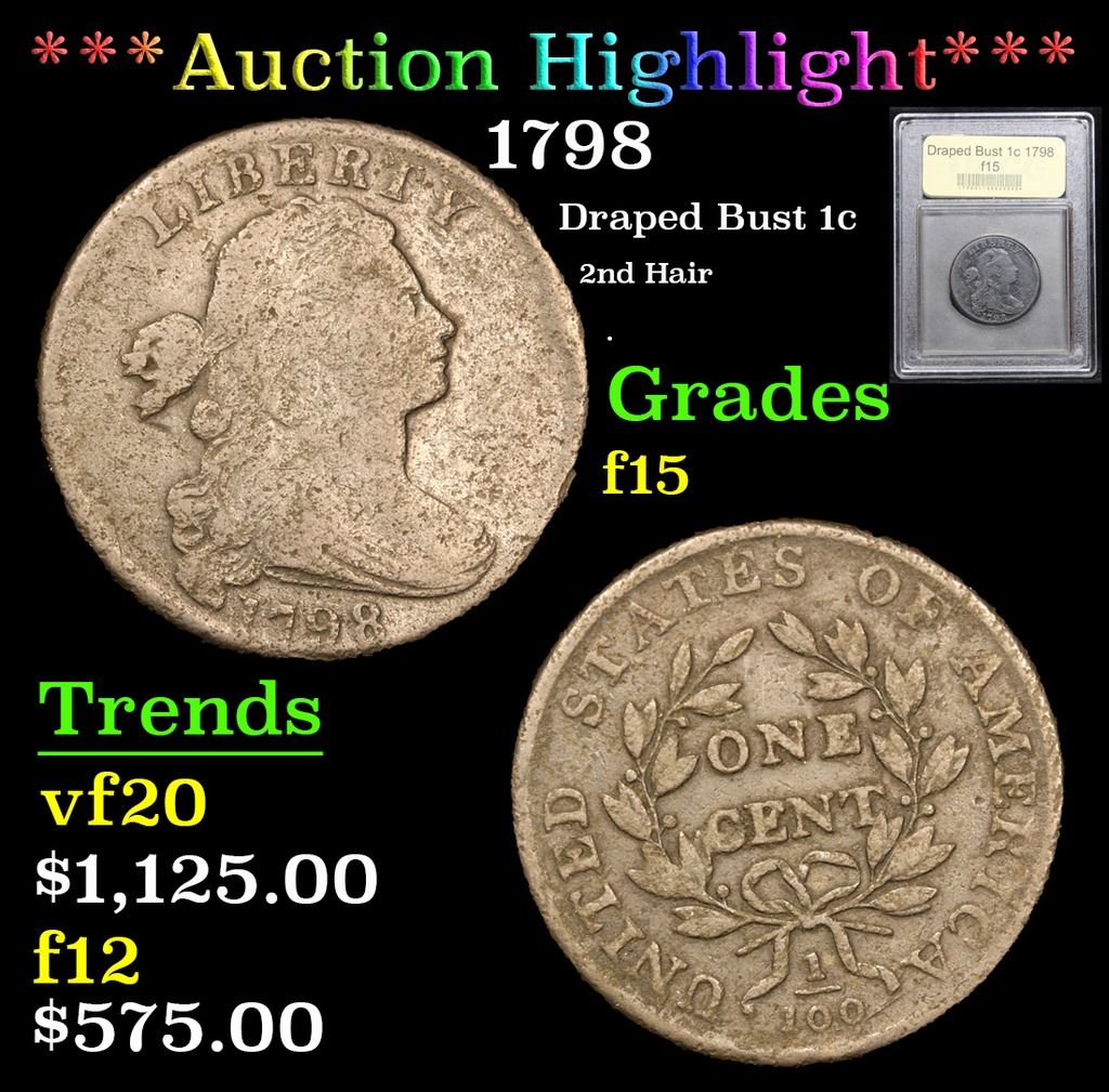 ***Auction Highlight*** 1798 . . Draped Bust Large Cent 1c Graded f+ By USCG.