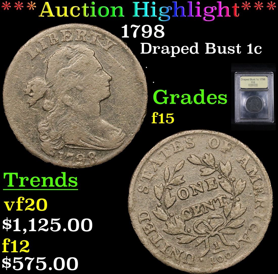 ***Auction Highlight*** 1798 . . Draped Bust Large Cent 1c Graded f+ By USCG.