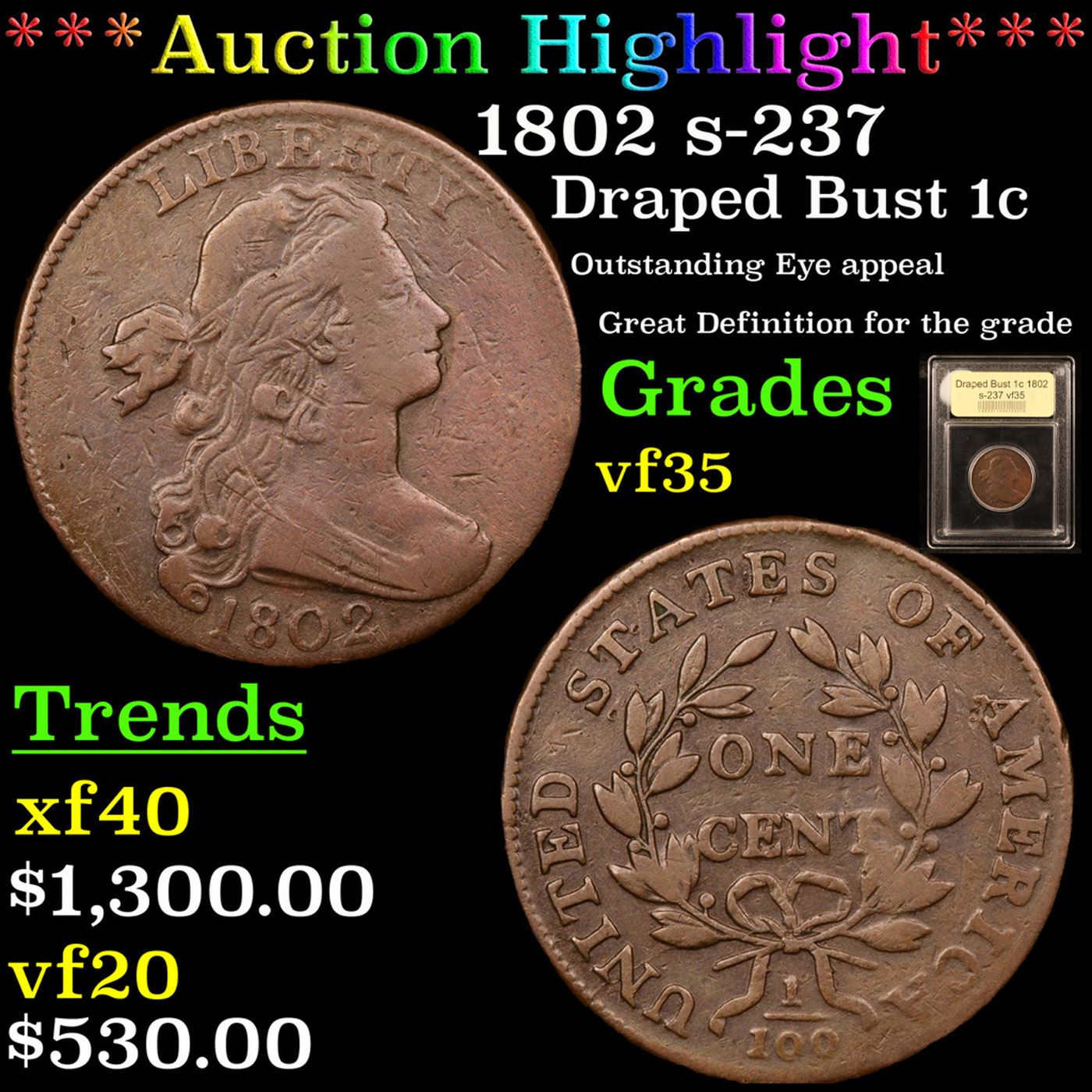 ***Auction Highlight*** 1802 S237 R2 Draped Bust Large Cent 1c Graded vf++ By USCG (fc)
