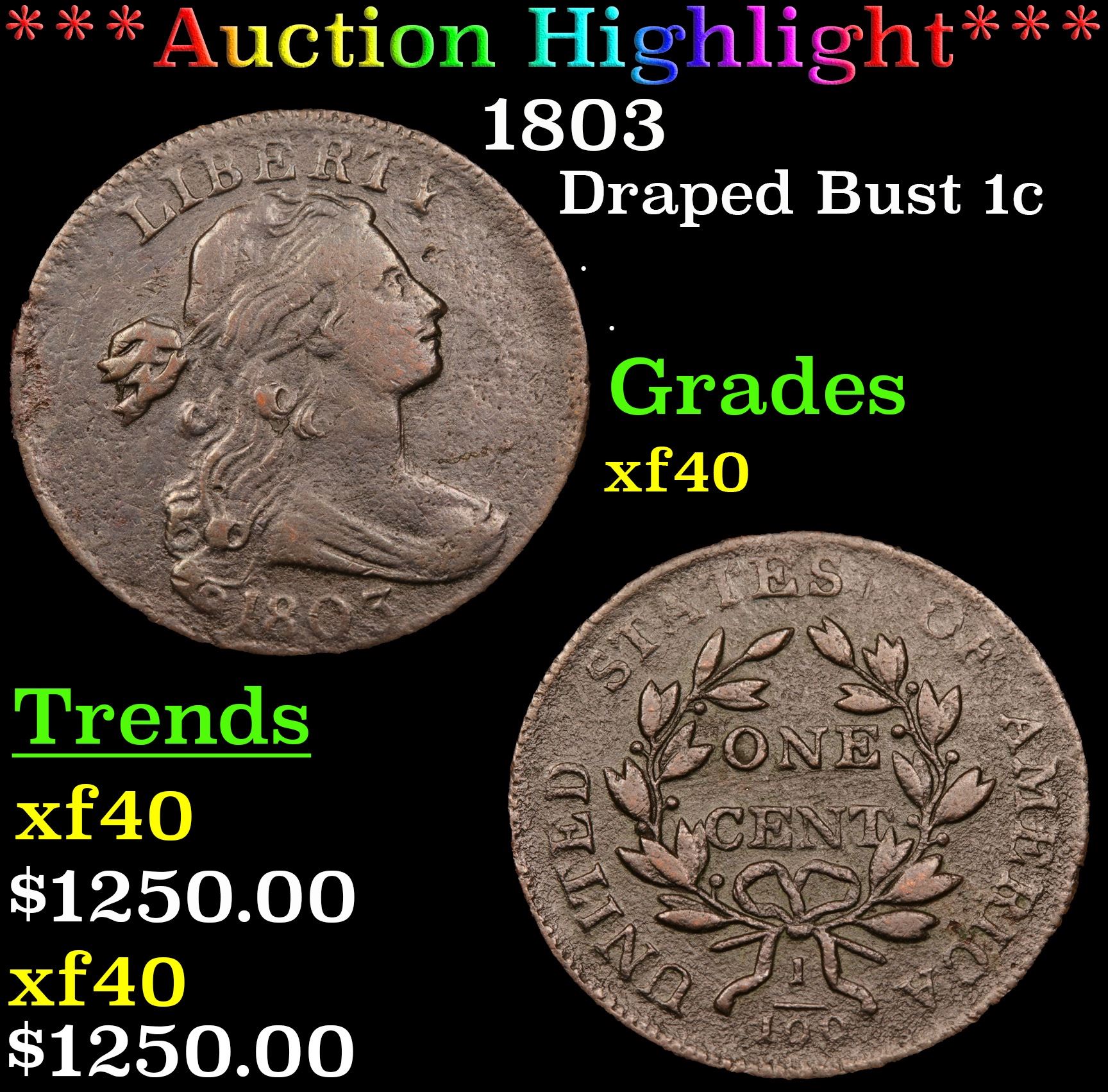 ***Auction Highlight*** 1803 Draped Bust Lg Cent 1c Graded xf By USCG. A Corey's Pick, Bid to Win Coin