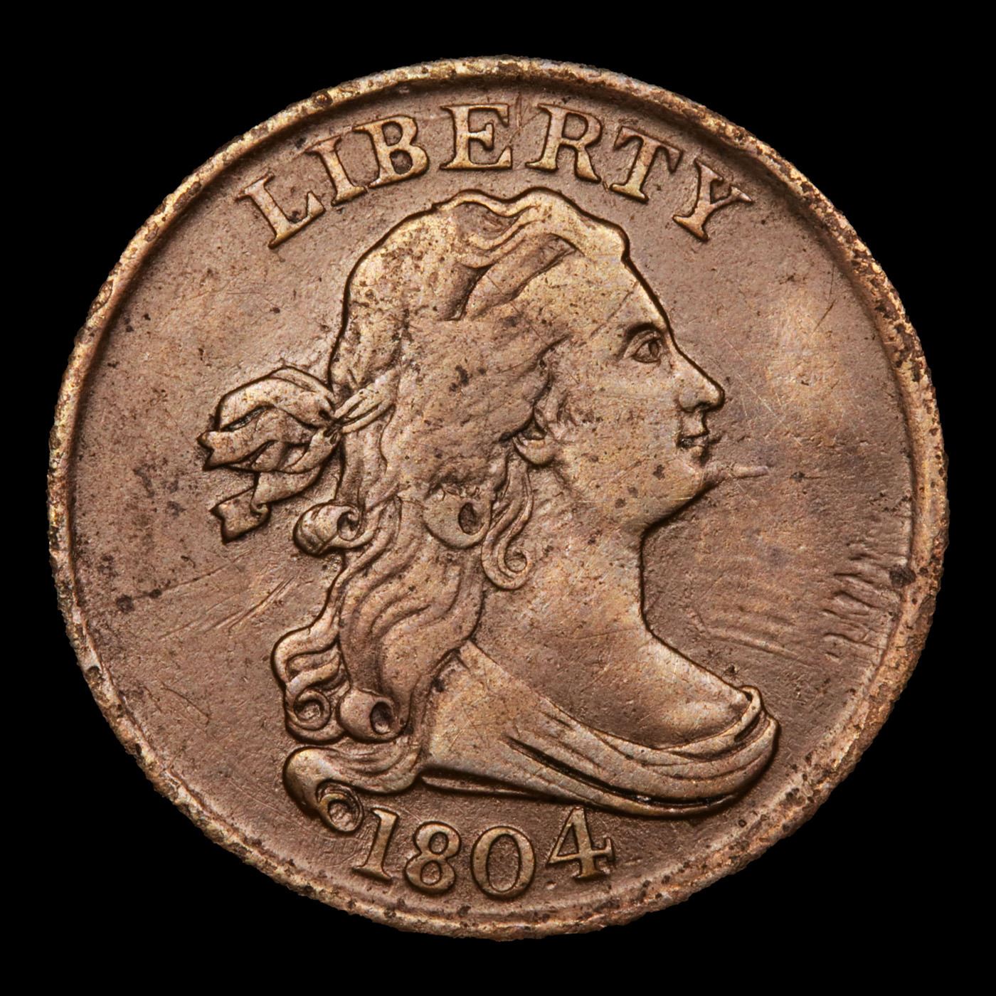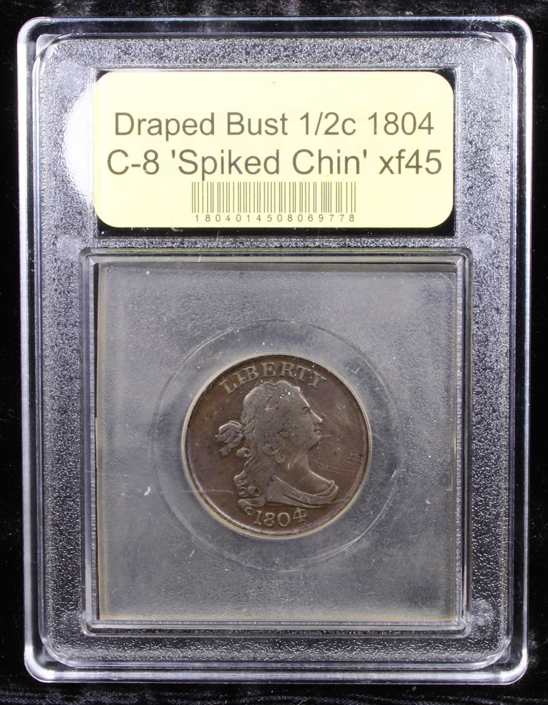***Auction Highlight*** 1804 C-8 'Spiked Chin' Draped Bust Half Cent 1/2c Graded xf+ By USCG (fc)